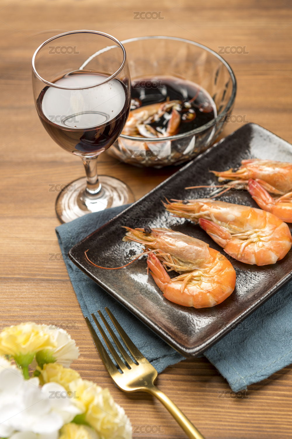 黑碗里的水煮虾白灼虾
