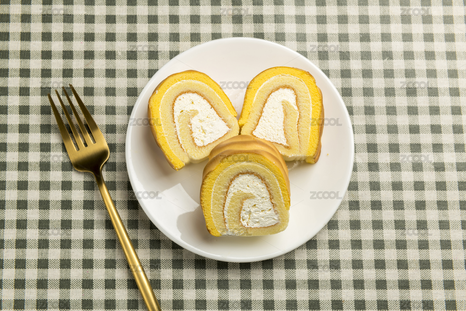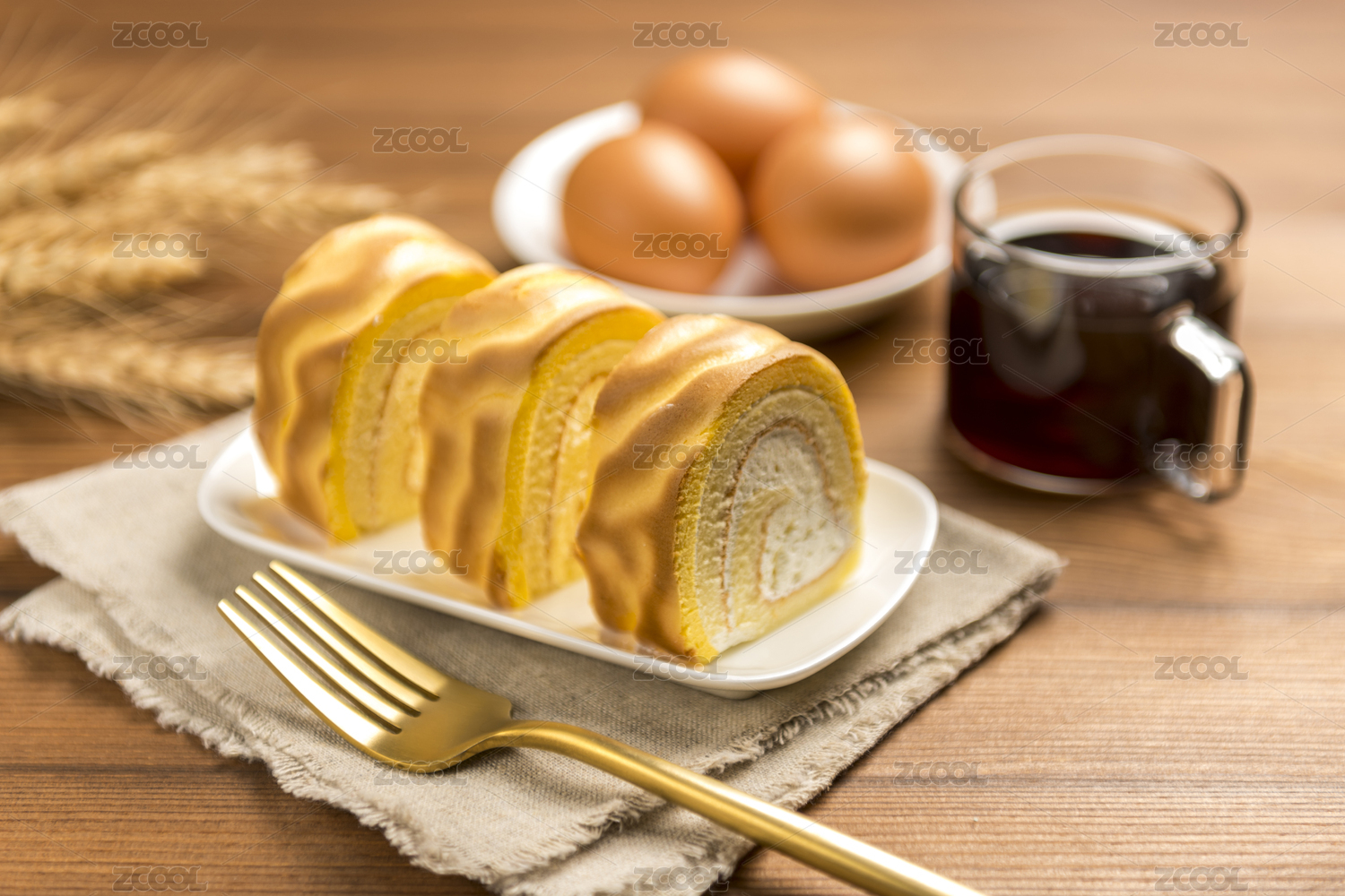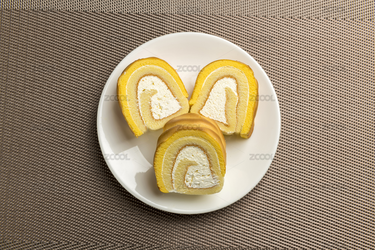 虎皮纹蛋糕卷西点摆放在桌面上特写