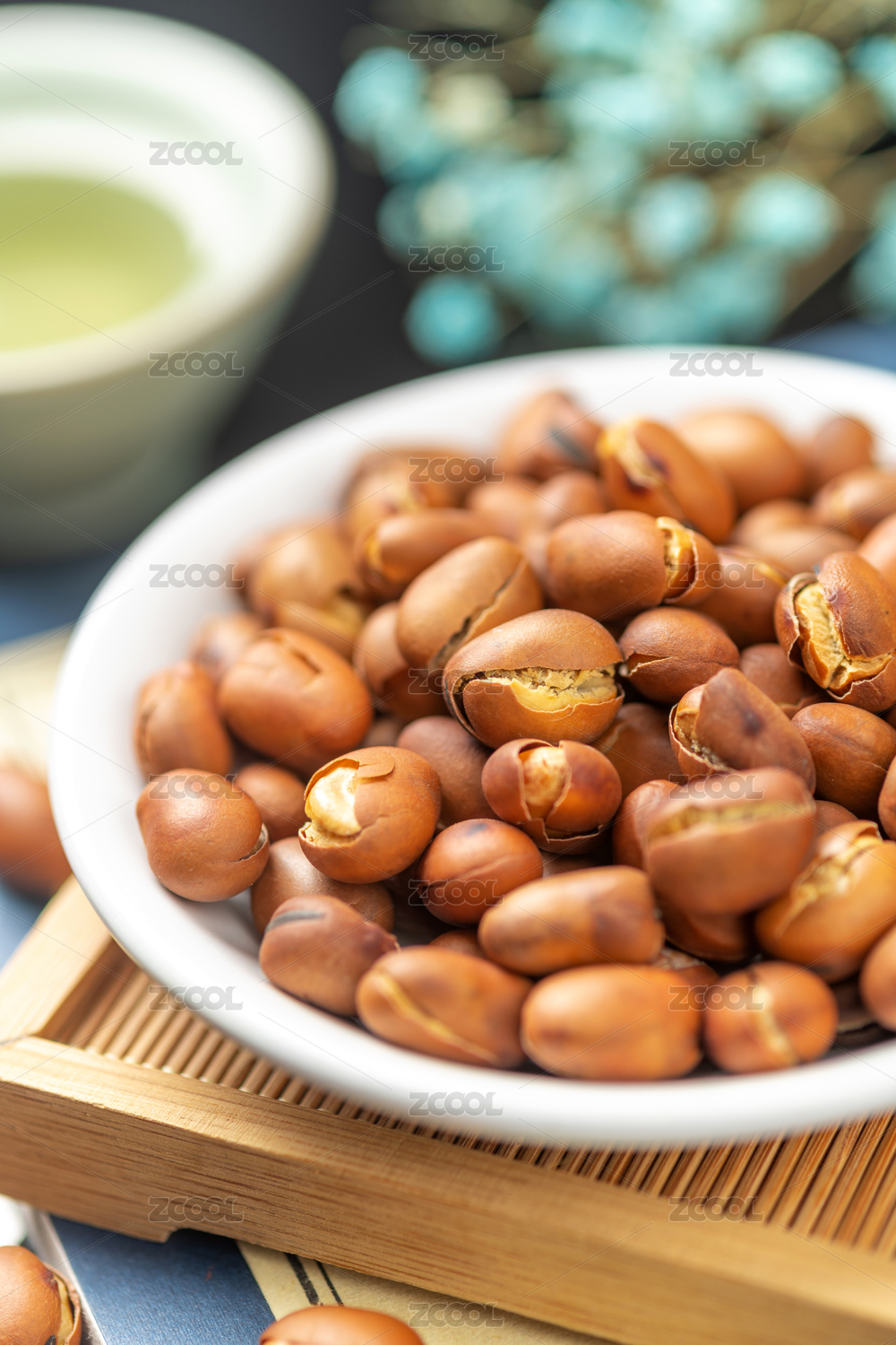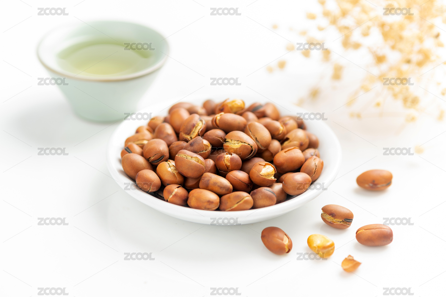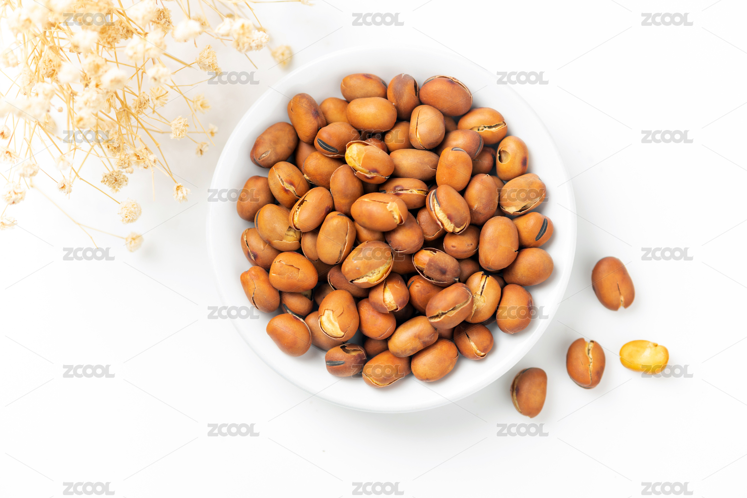 崩豆炒蚕豆特写白色背景