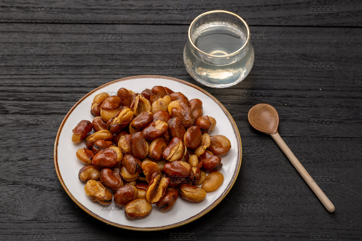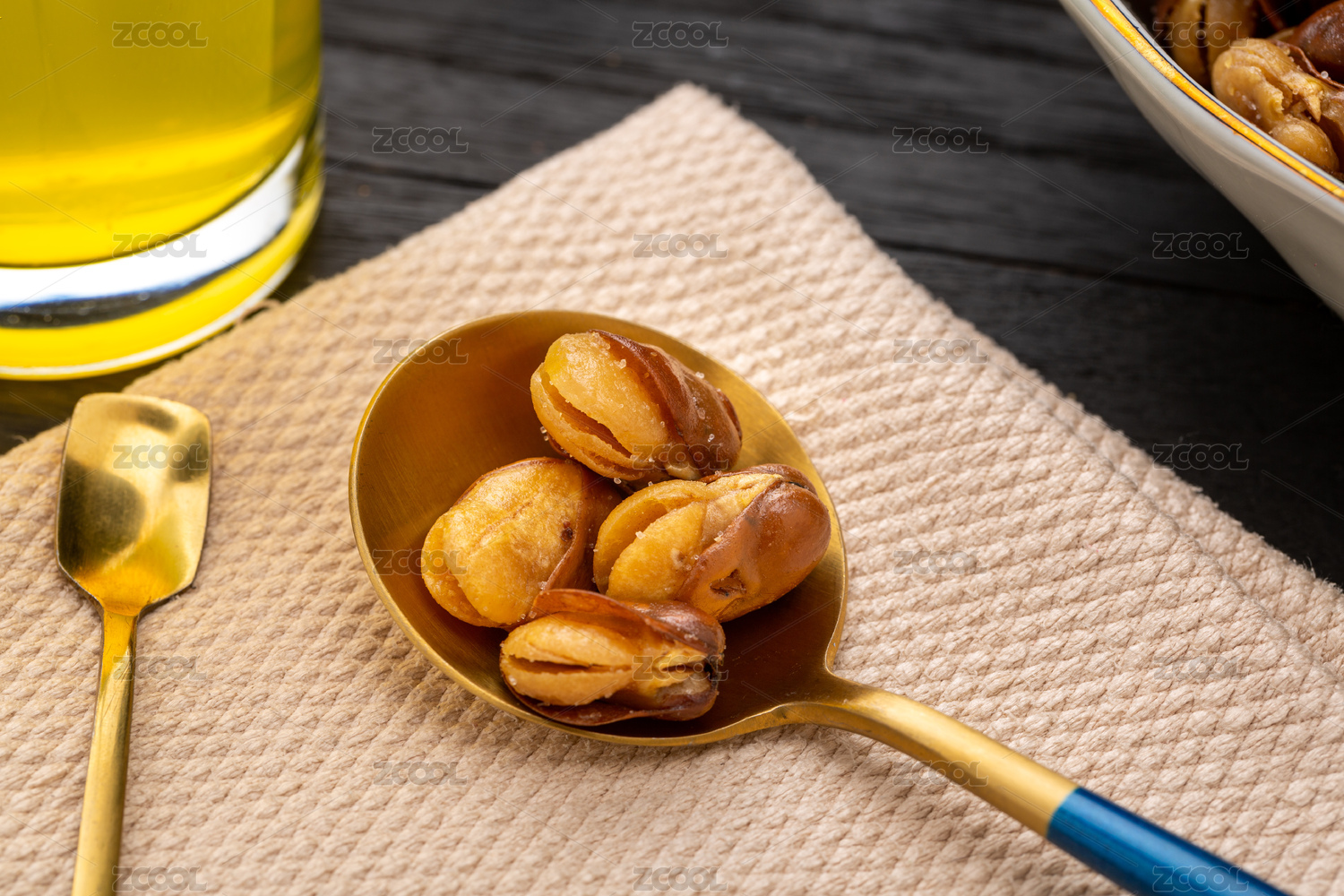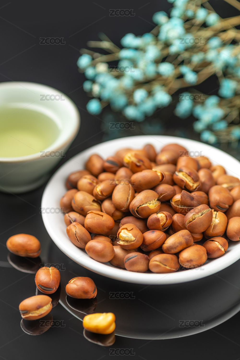 崩豆炒蚕豆特写黑色背景