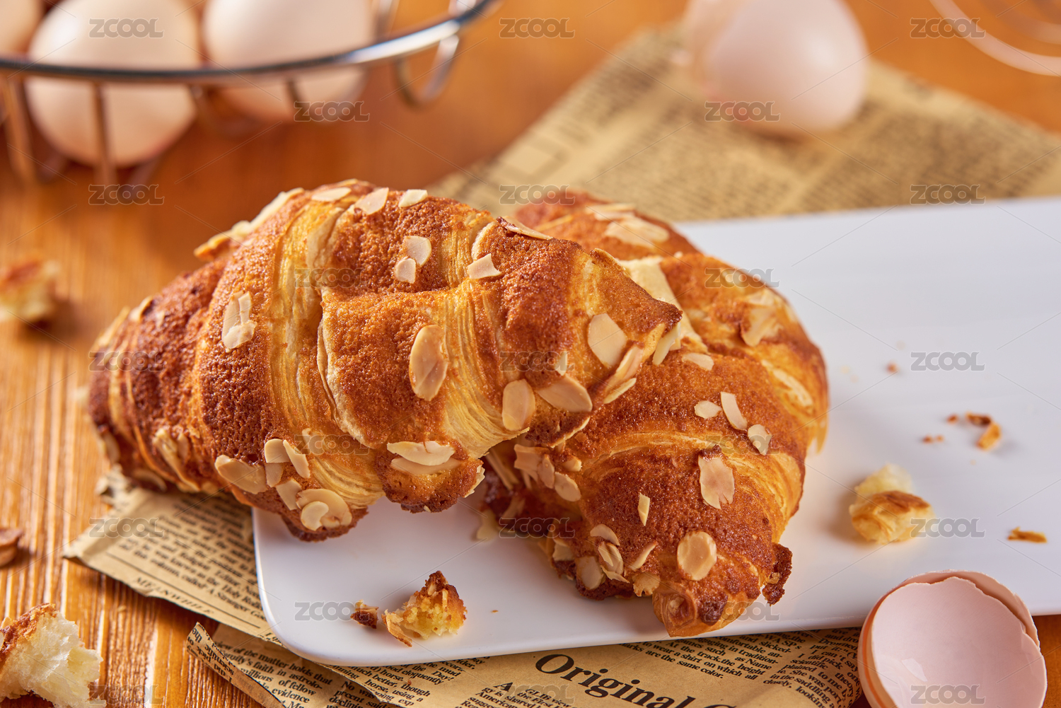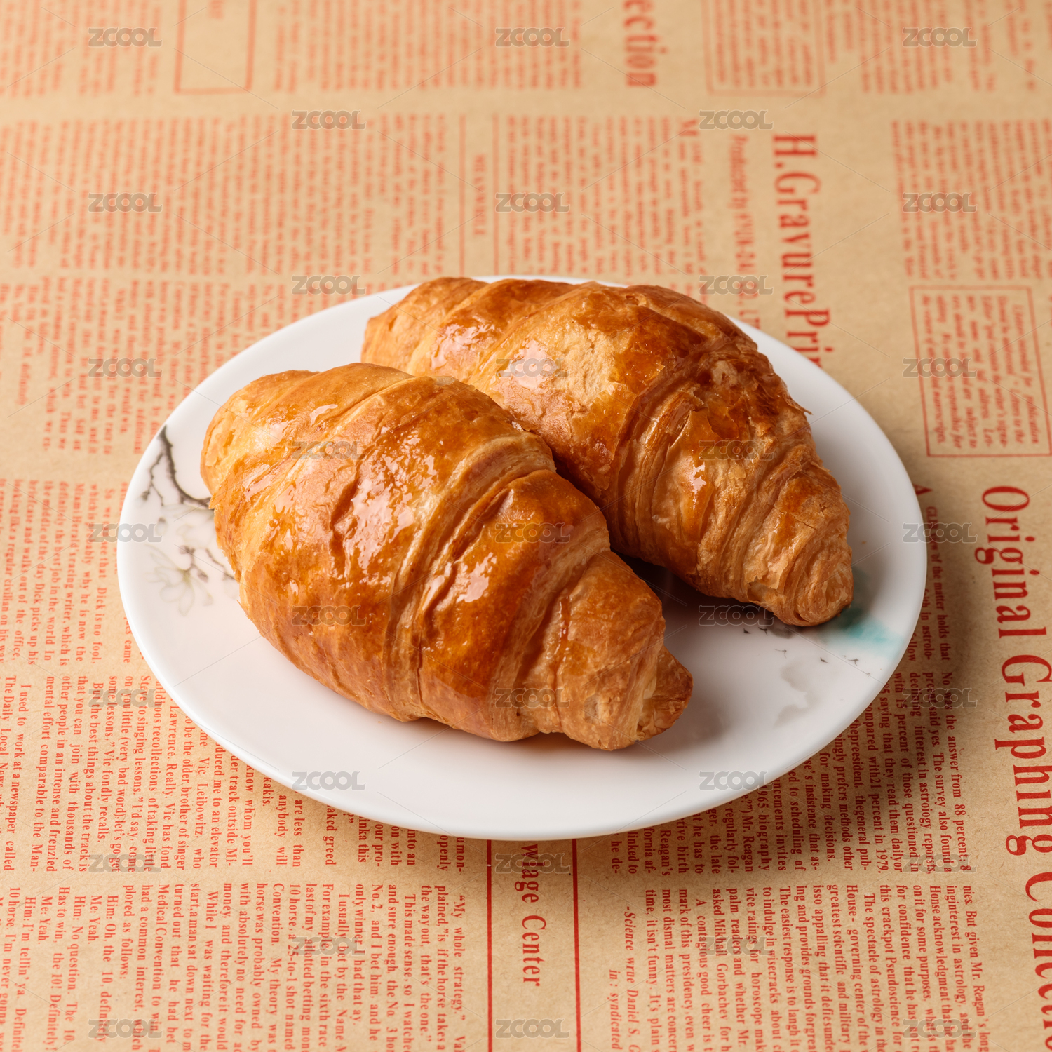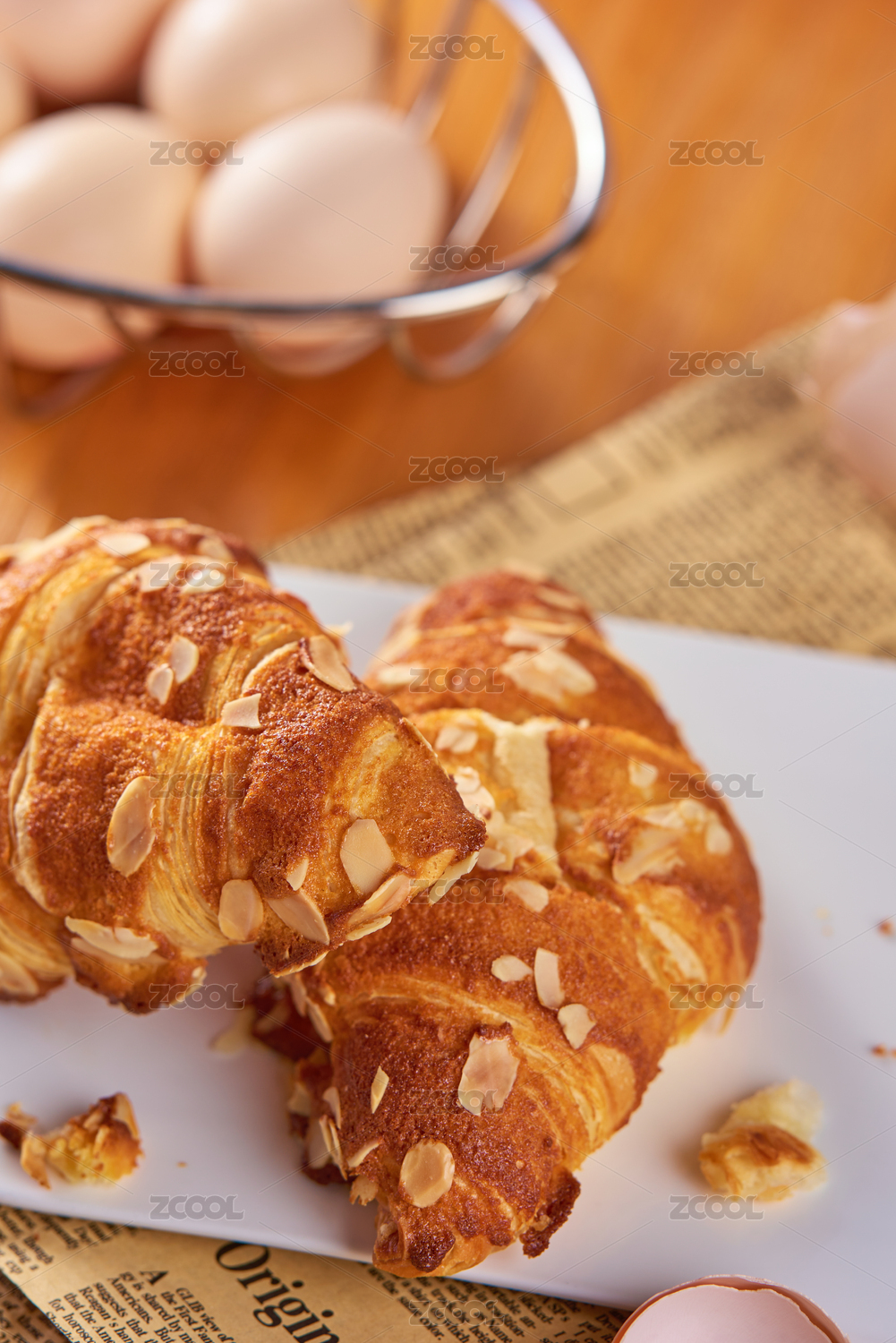 桌子盘子报纸牛角包