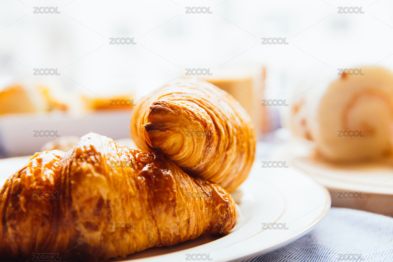 白底金黄色可颂牛角包