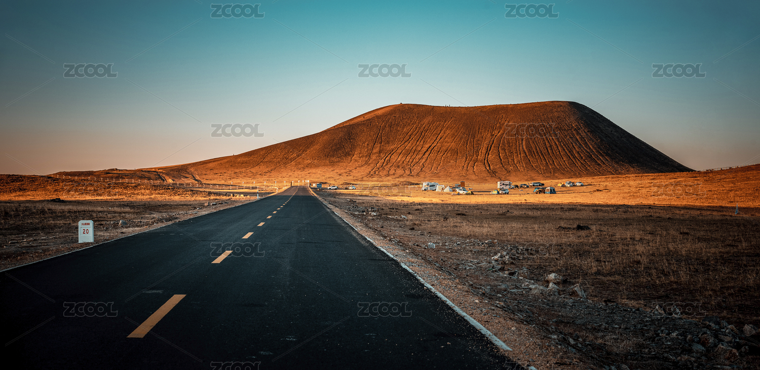 内蒙古乌兰哈达火山地质公园公路营地清晨