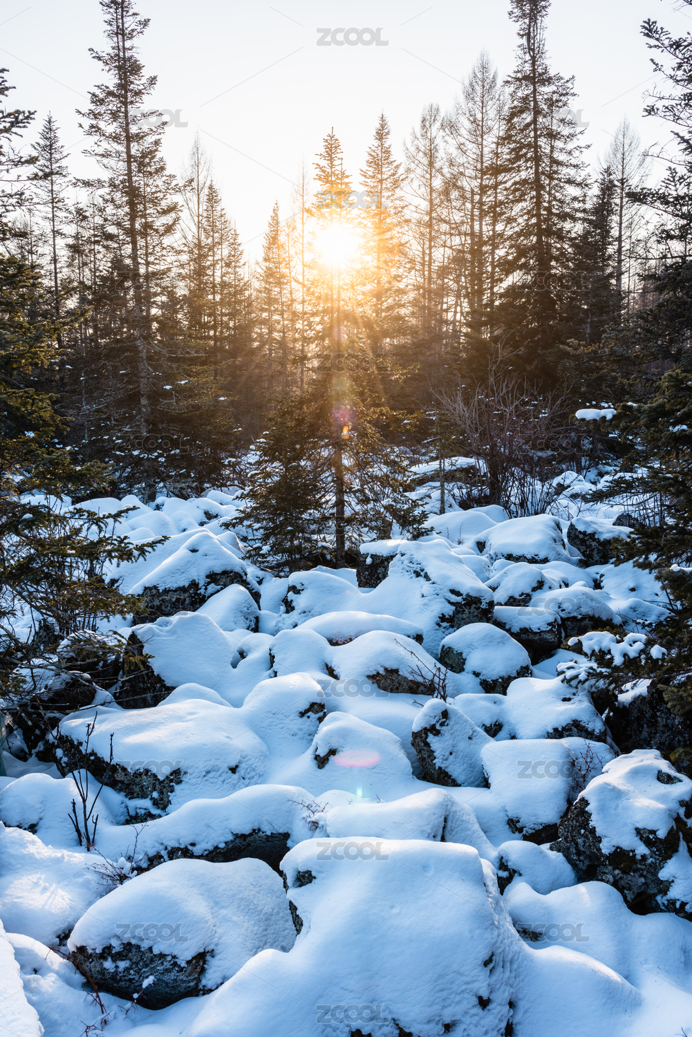 冬天雪后的黑龙江红星火山地质公园大小石海