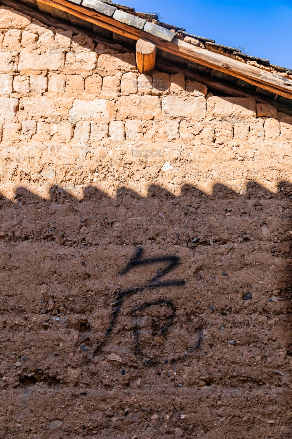 中国四川眉山洪雅县学街老街一段夯土墙遗迹