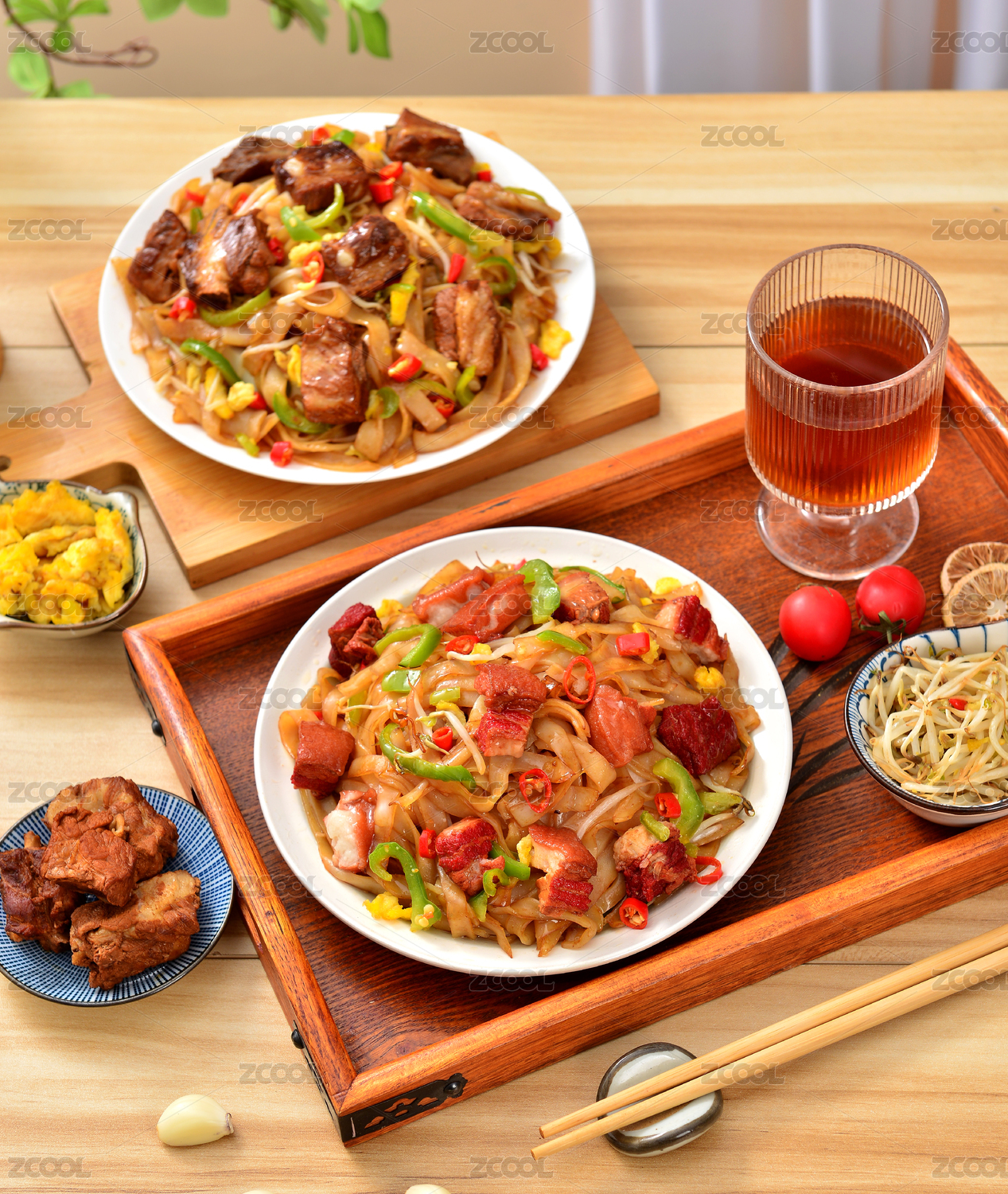 红烧肉炒河粉