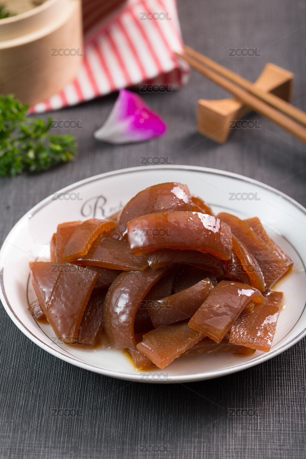 盘子里的凉拌猪皮冻