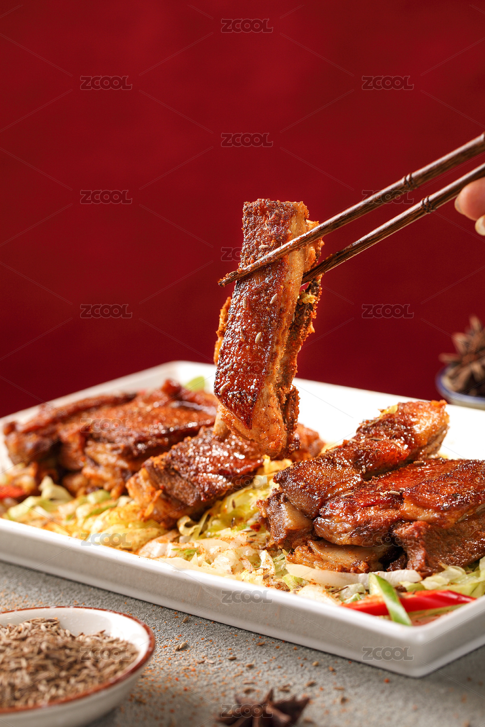 一份中餐热菜孜然烤羊排