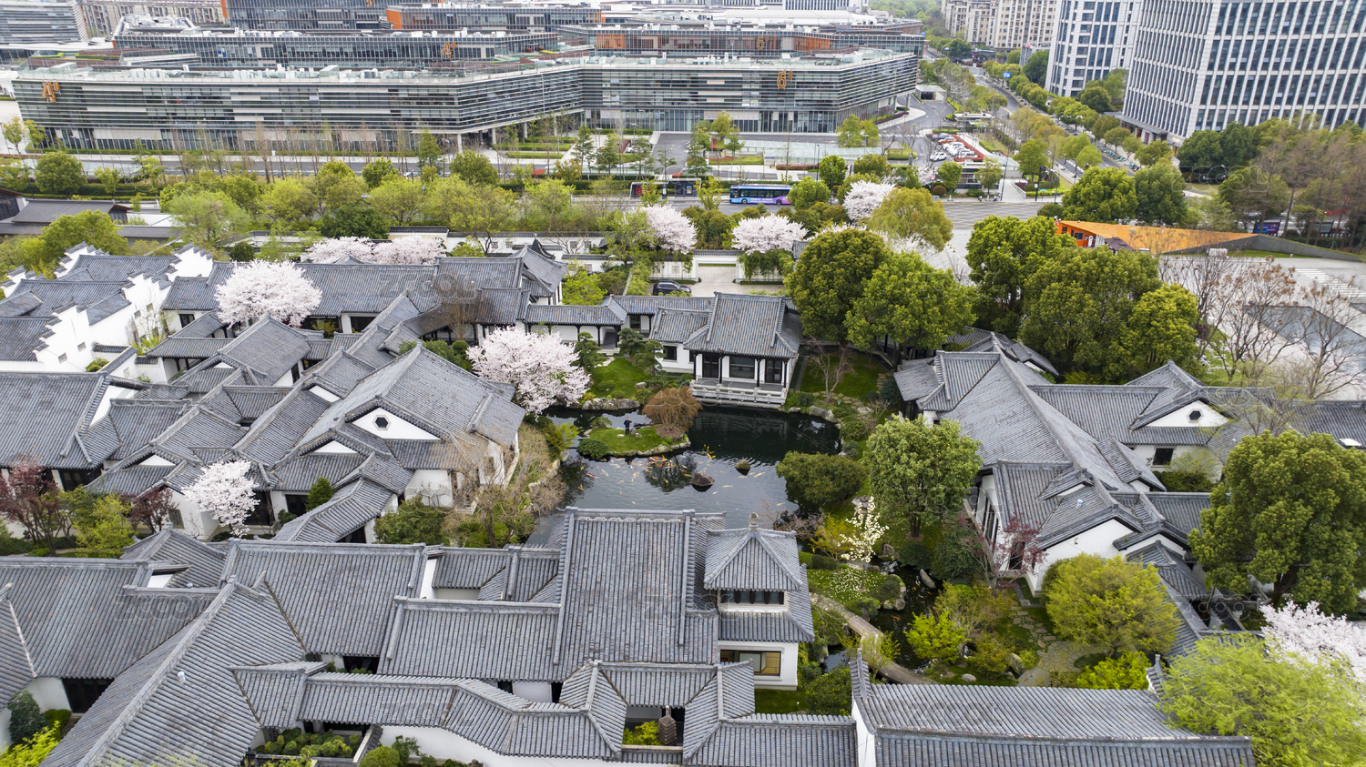 杭州阿里巴巴西溪园区古风徽派建筑樱花