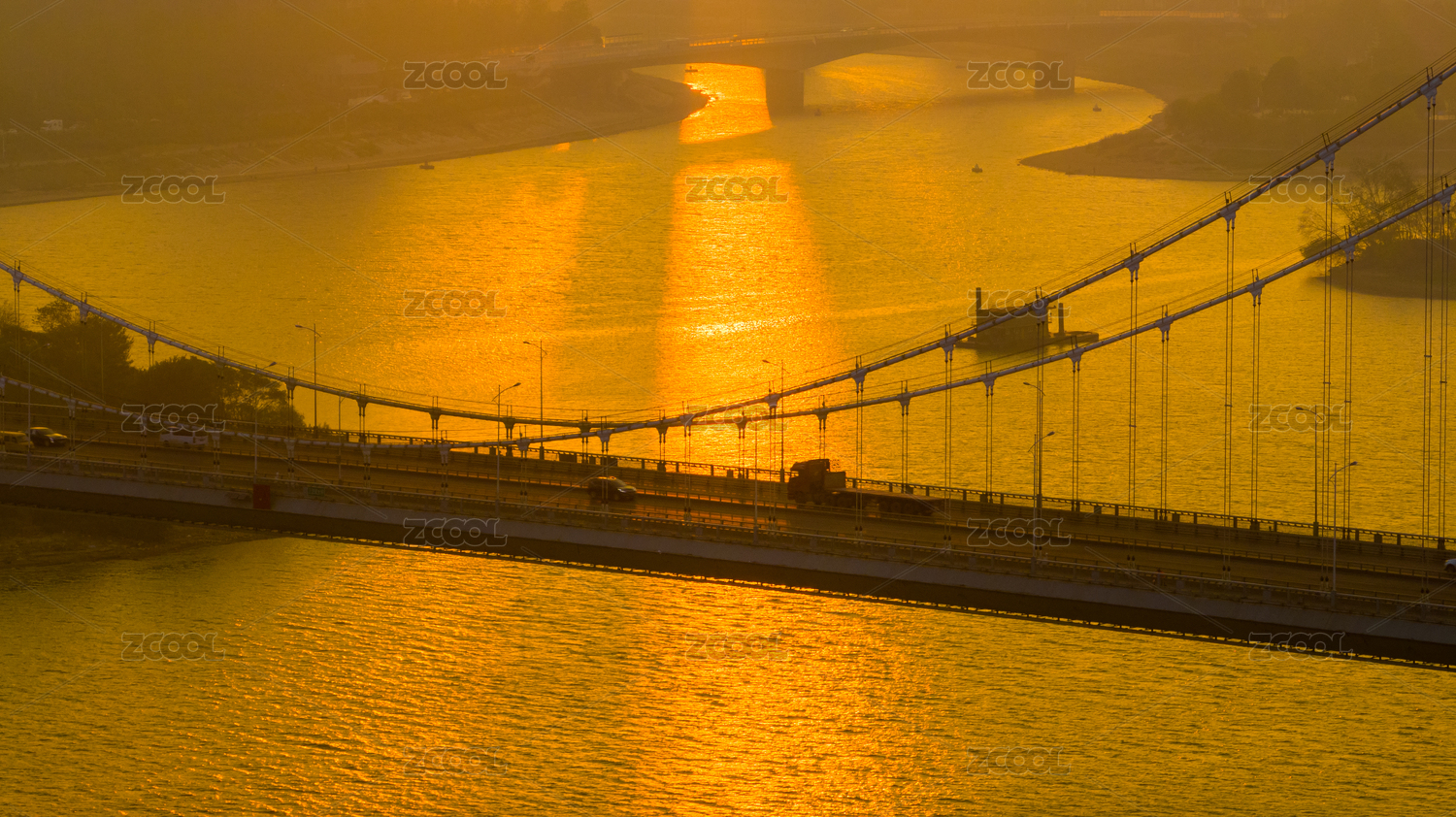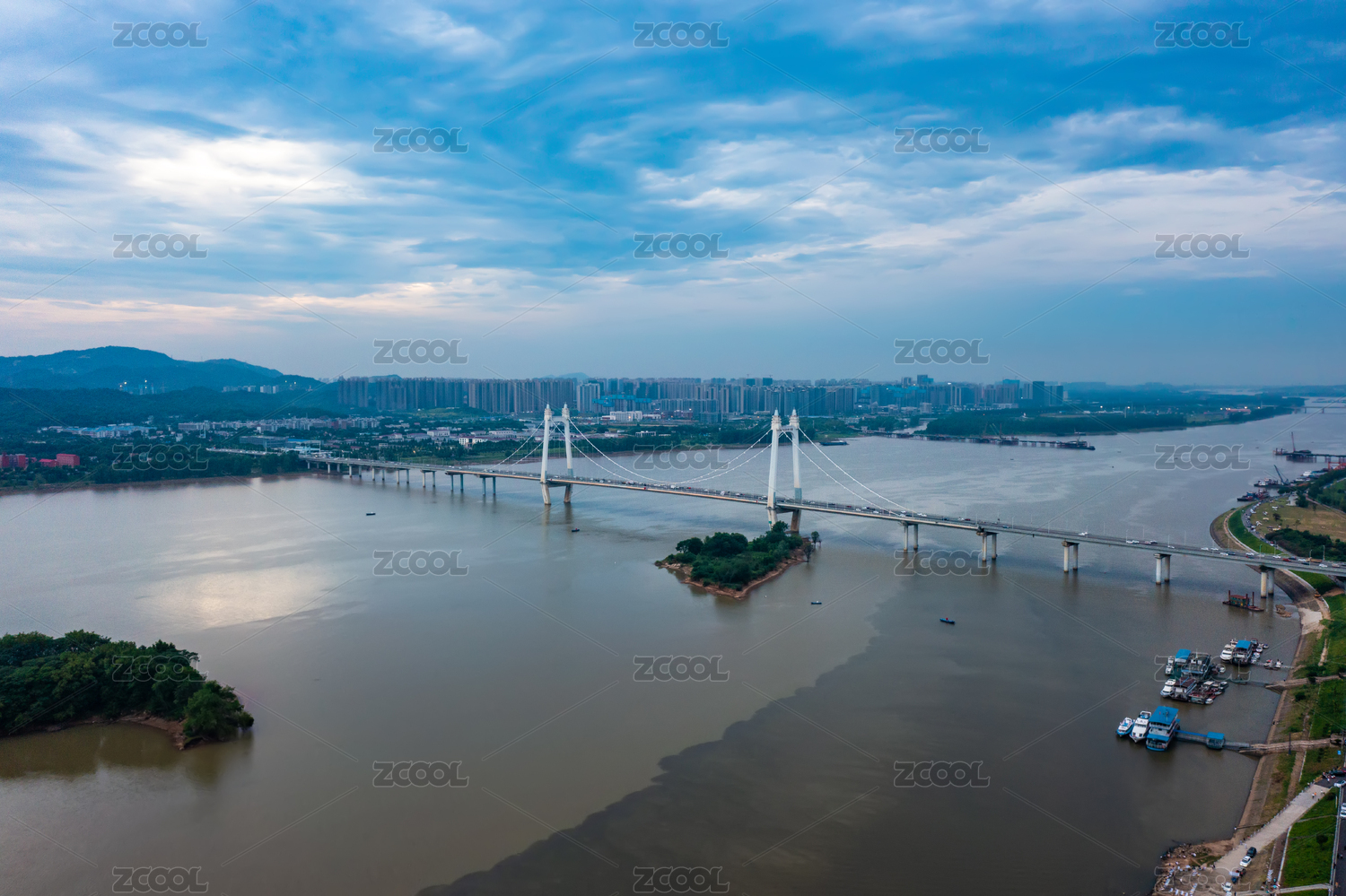 长沙湘江三汊矶大桥与东岸天际线鸟瞰景观