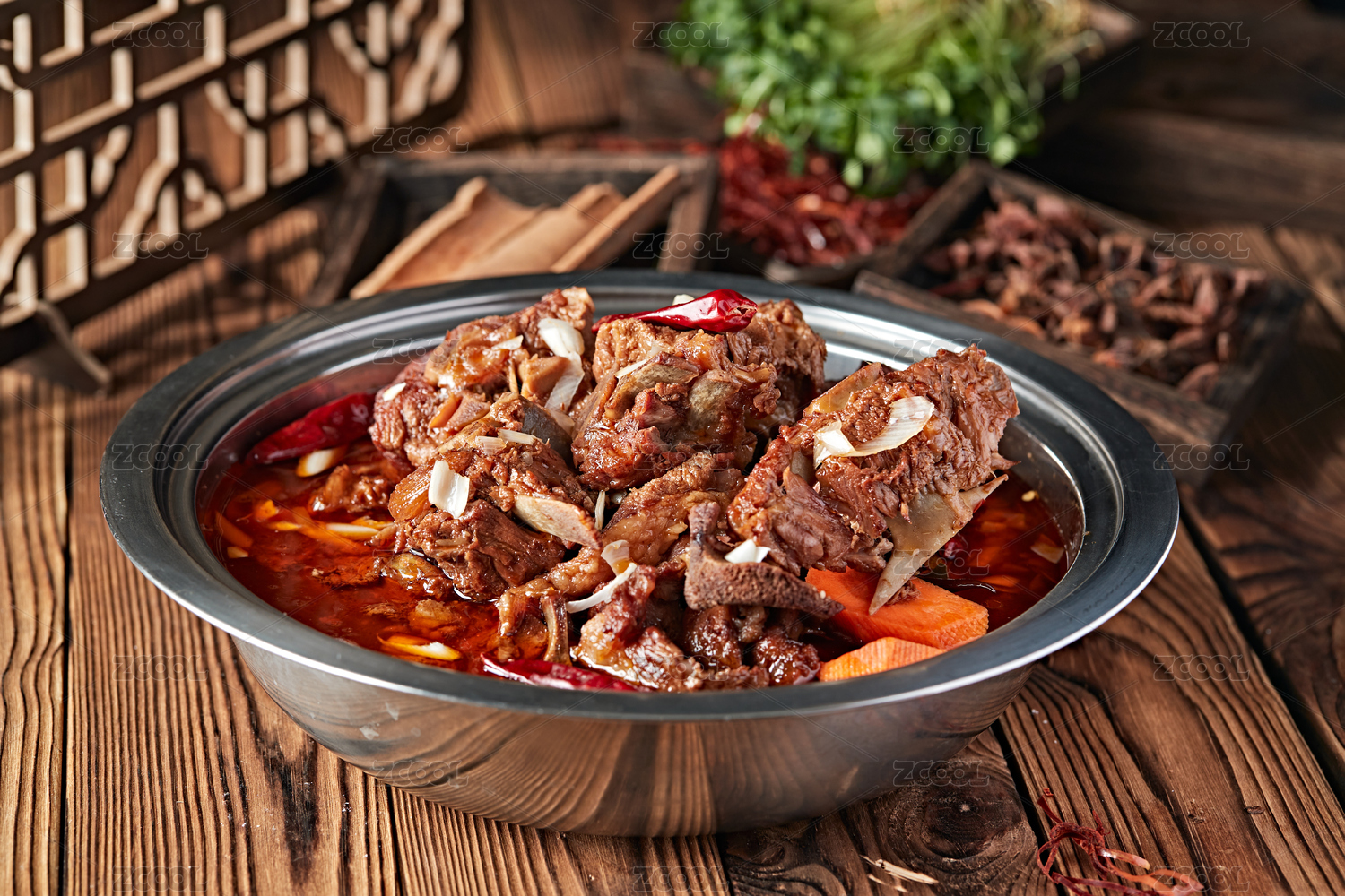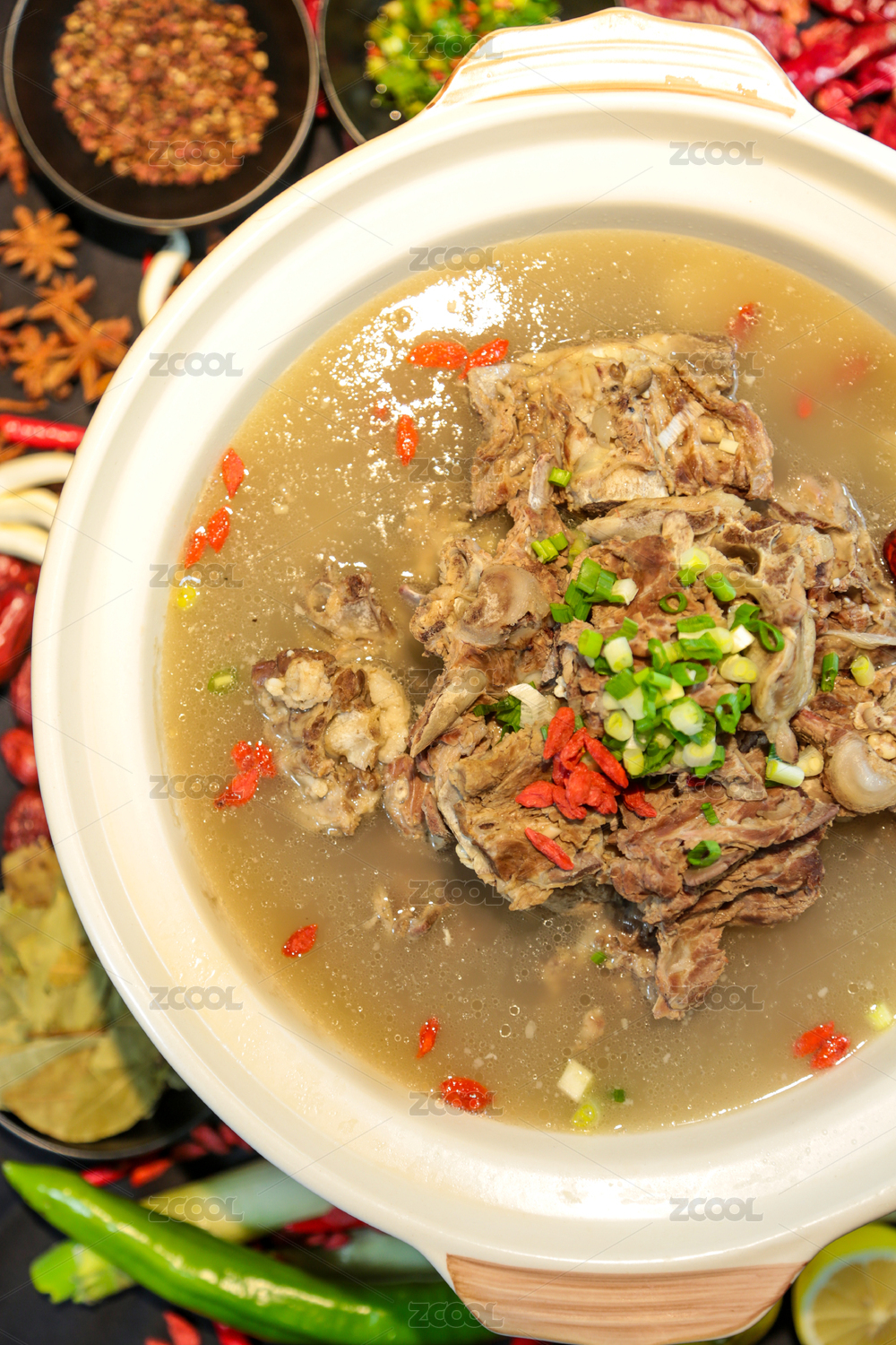 器皿里的羊蝎子锅