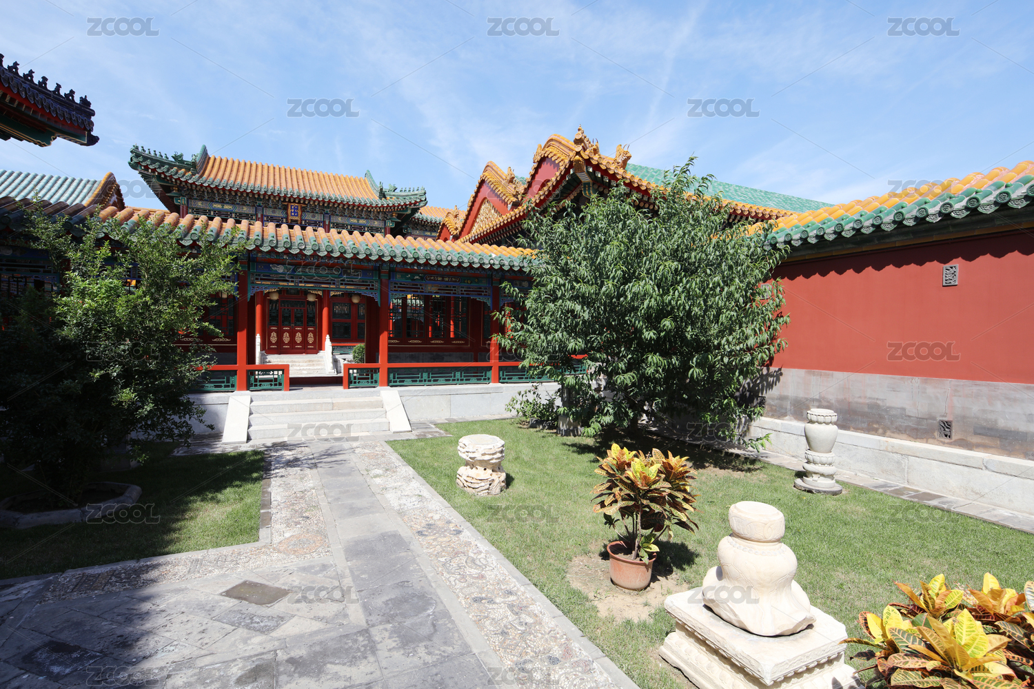 中国北京故宫建福宫西花园里的惠风亭与宫殿群