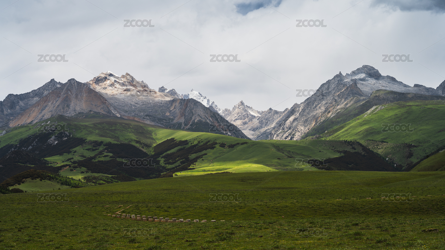 航拍中国四川理塘格聂之眼夏季高山草地自然风光
