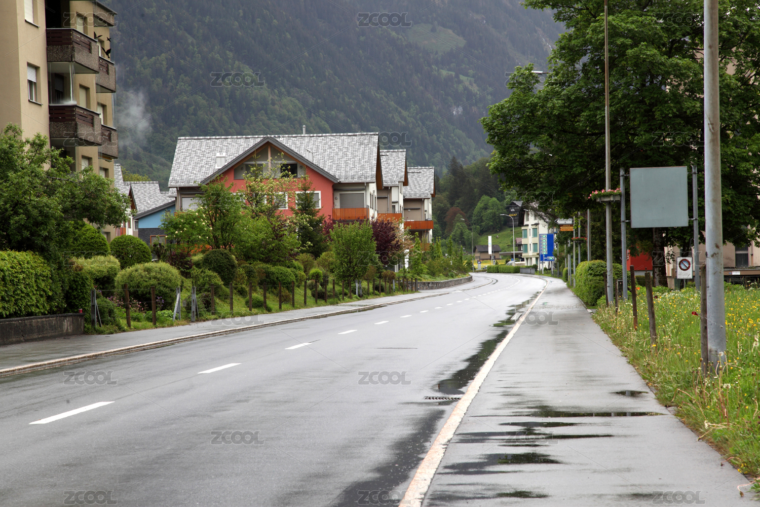 欧洲瑞士尔卑斯铁力士雪山下小镇风景