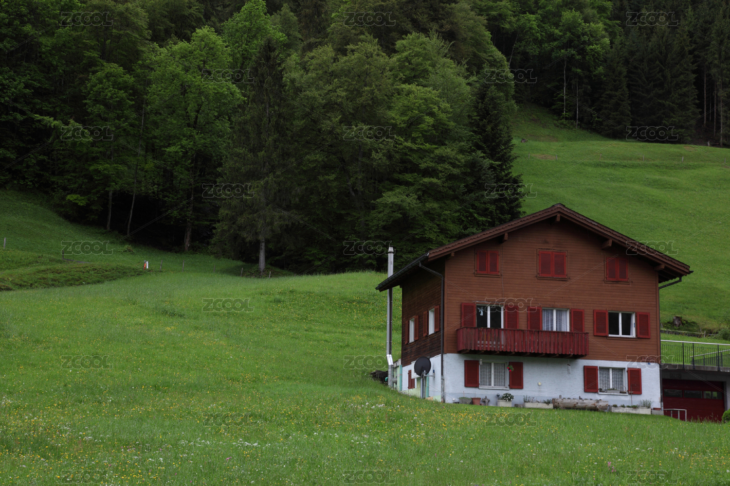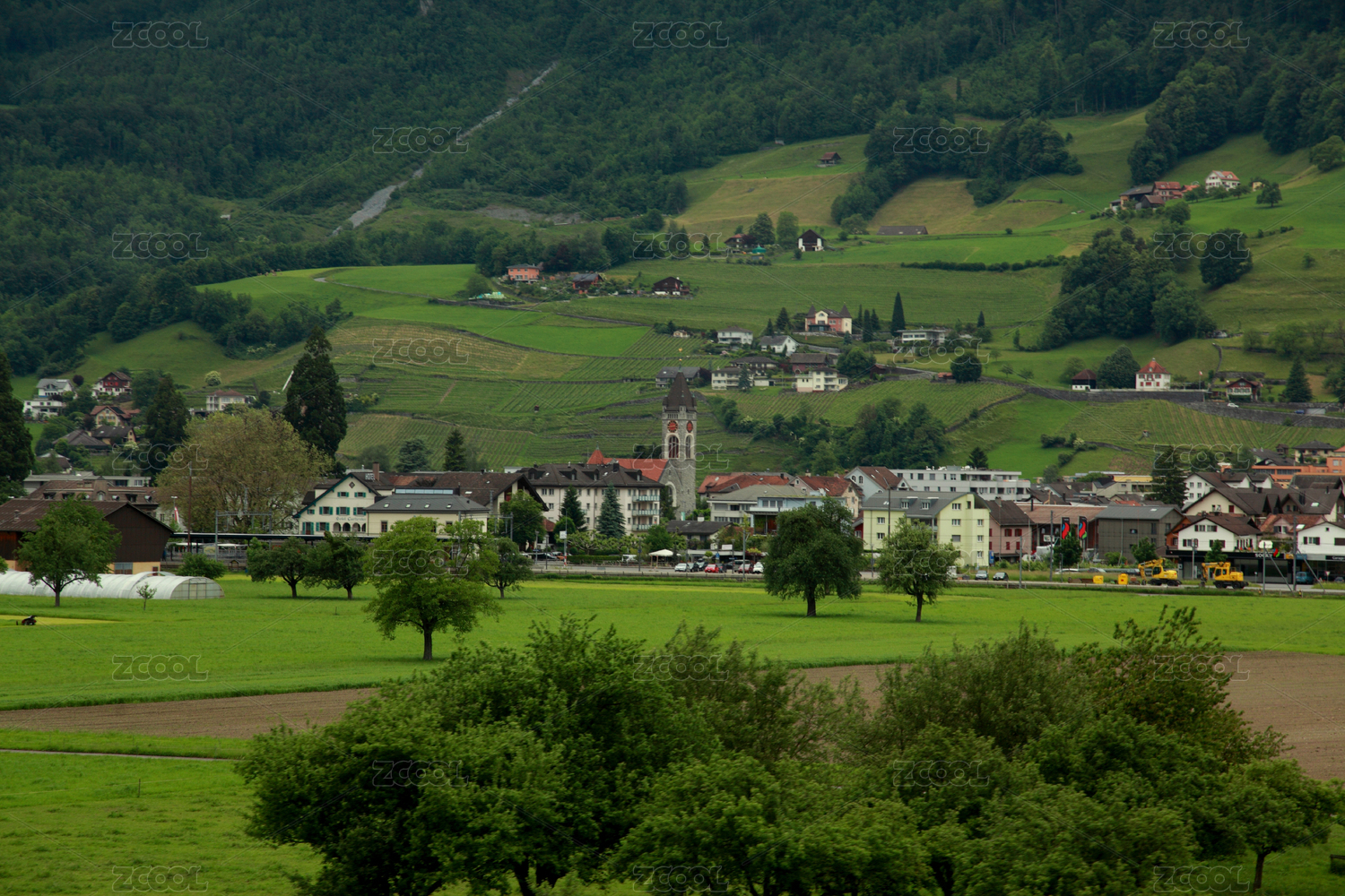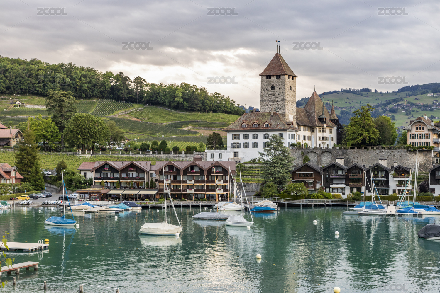 瑞士卢塞恩湖畔怡人风光扁平风格插画