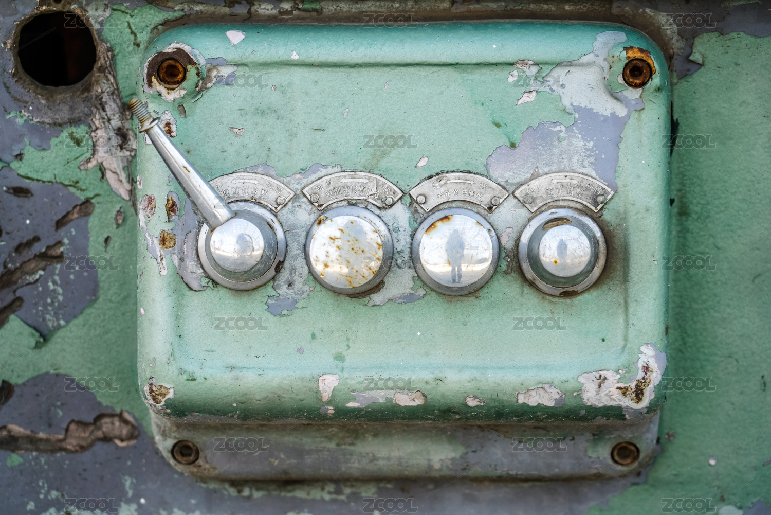 重工业时代废弃生锈的机床操作面板
