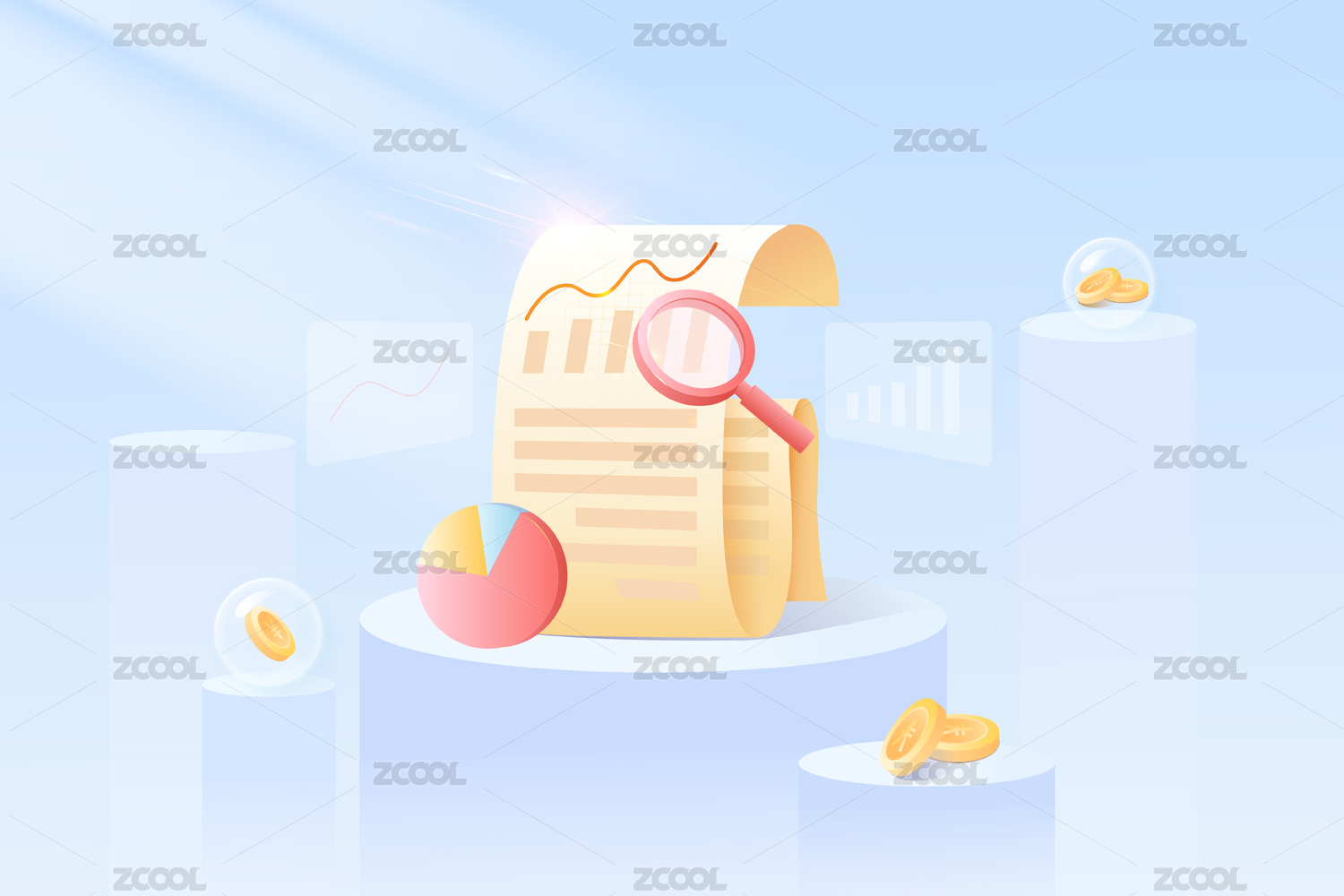 放大镜查看业绩账单金融数据图表