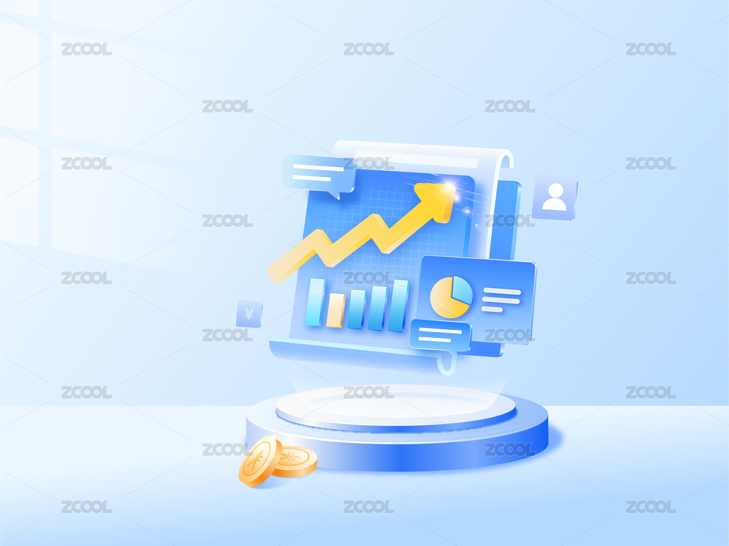 3D理财文件夹 饼图柱状图增长业绩报告