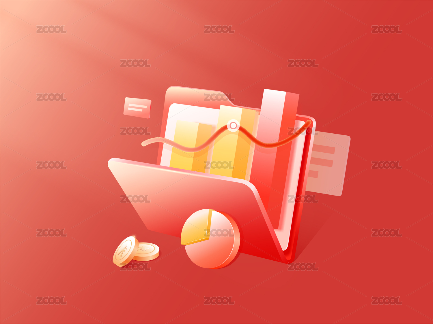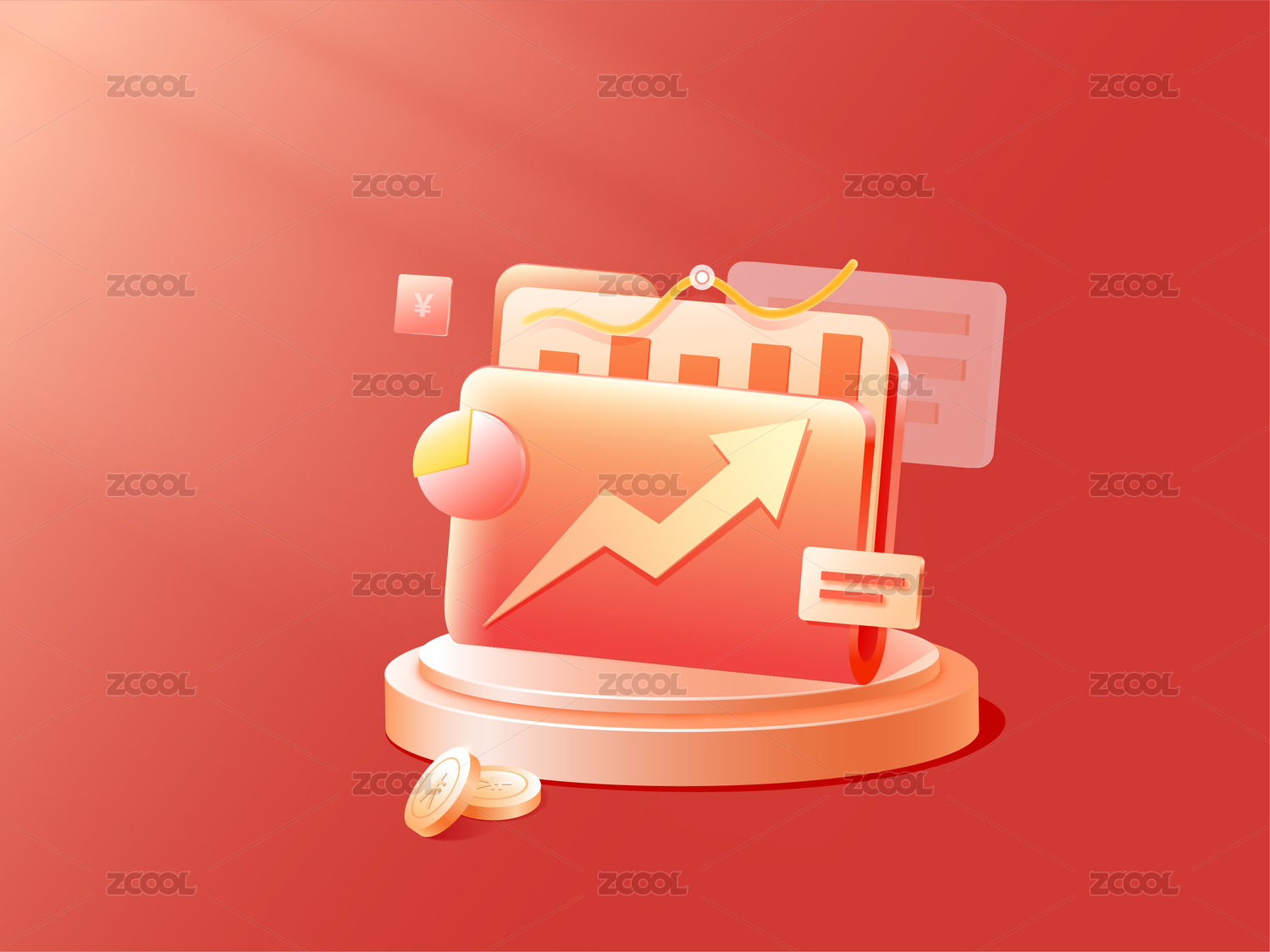 3D理财文件夹 红色上涨箭头业绩报告