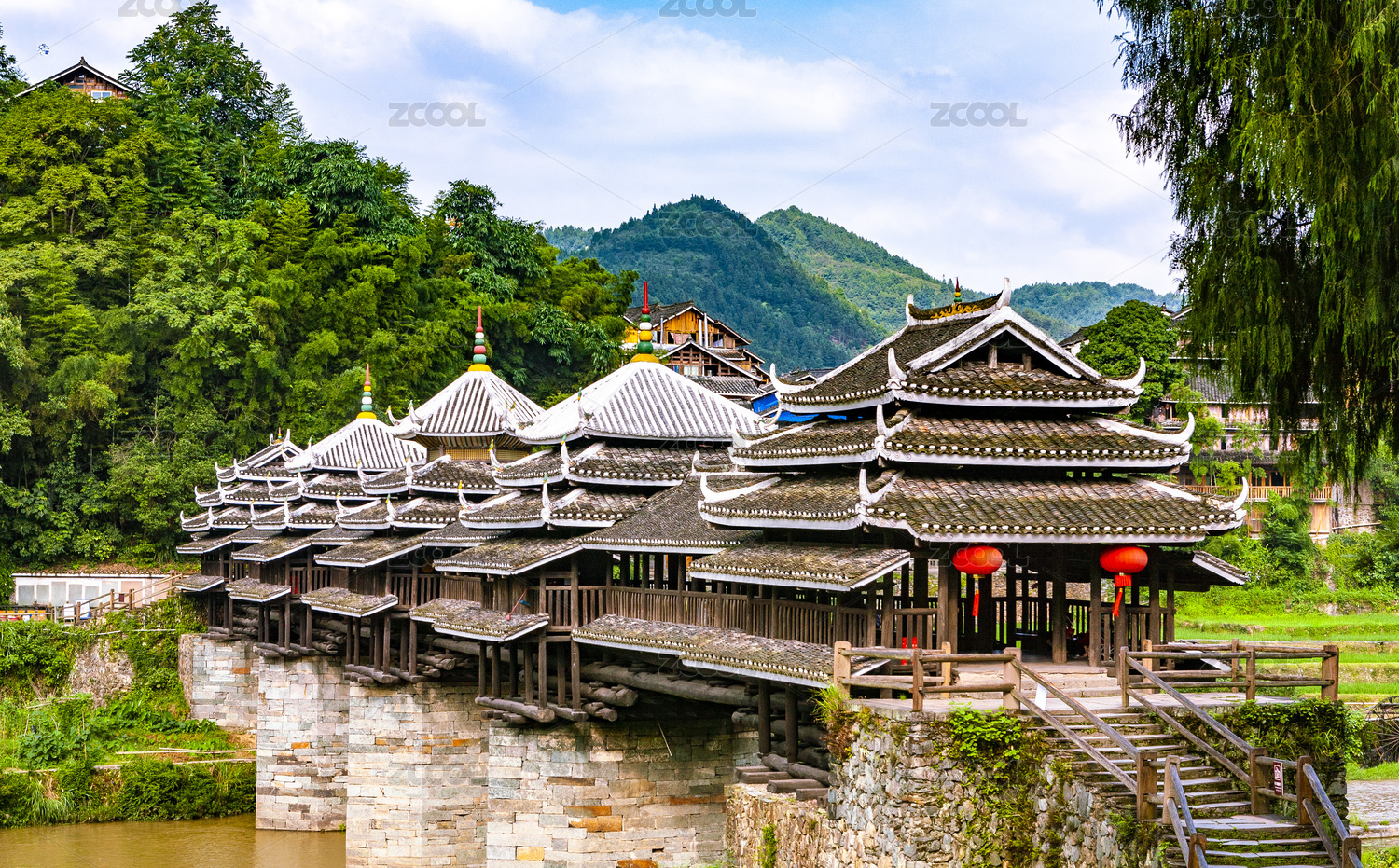中国广西柳州三江的程阳八寨的古桥程阳风雨桥