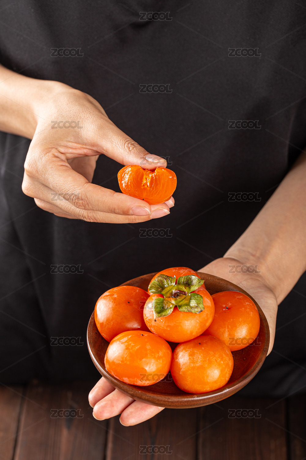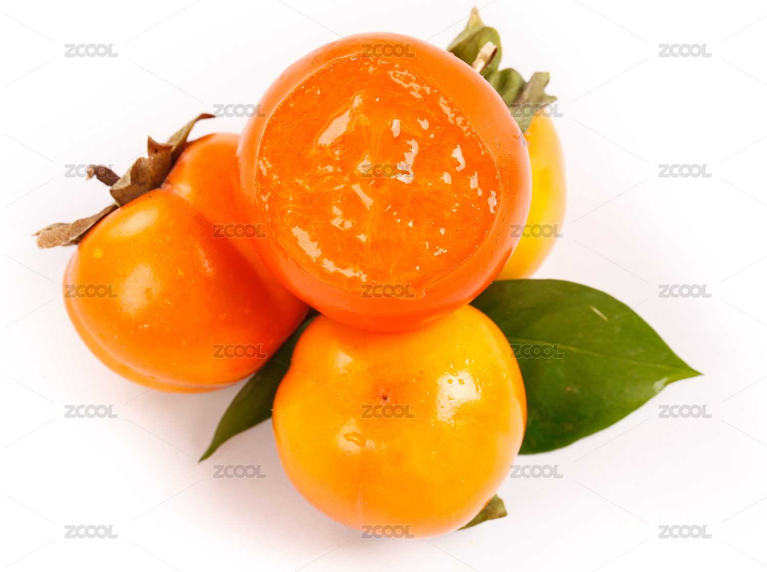 白底上放着火柿子和剥开的火柿子