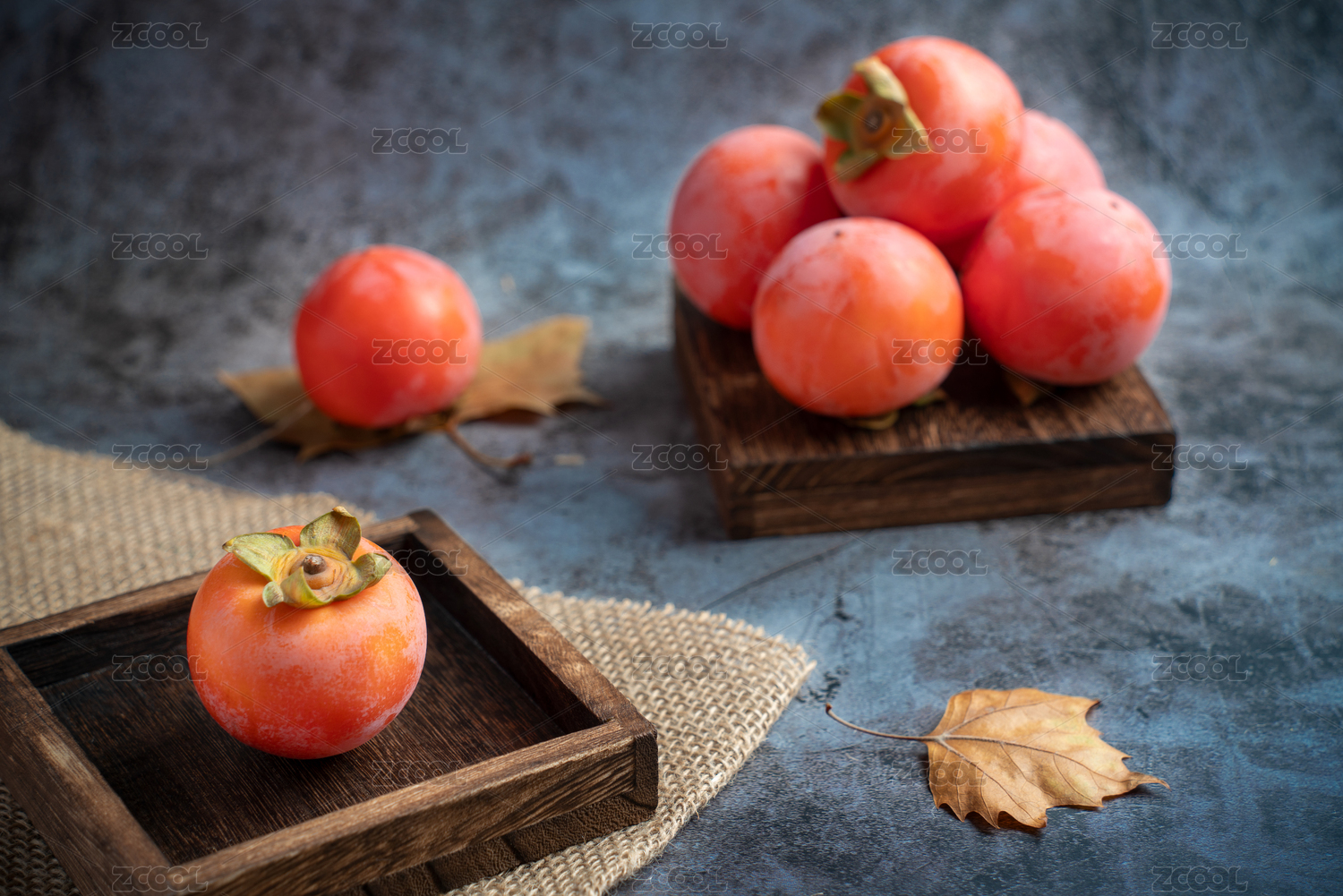 桌子上成熟的柿子