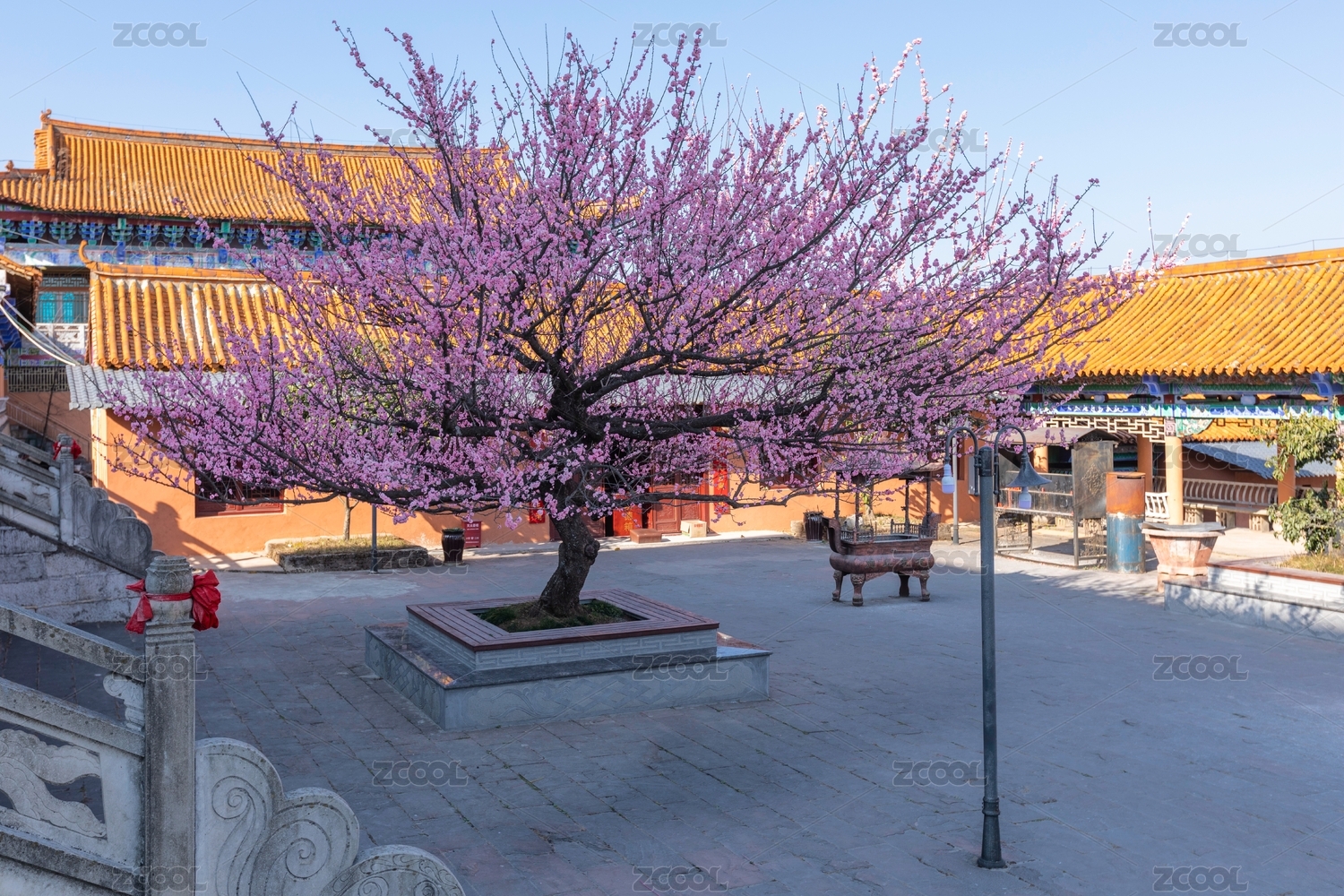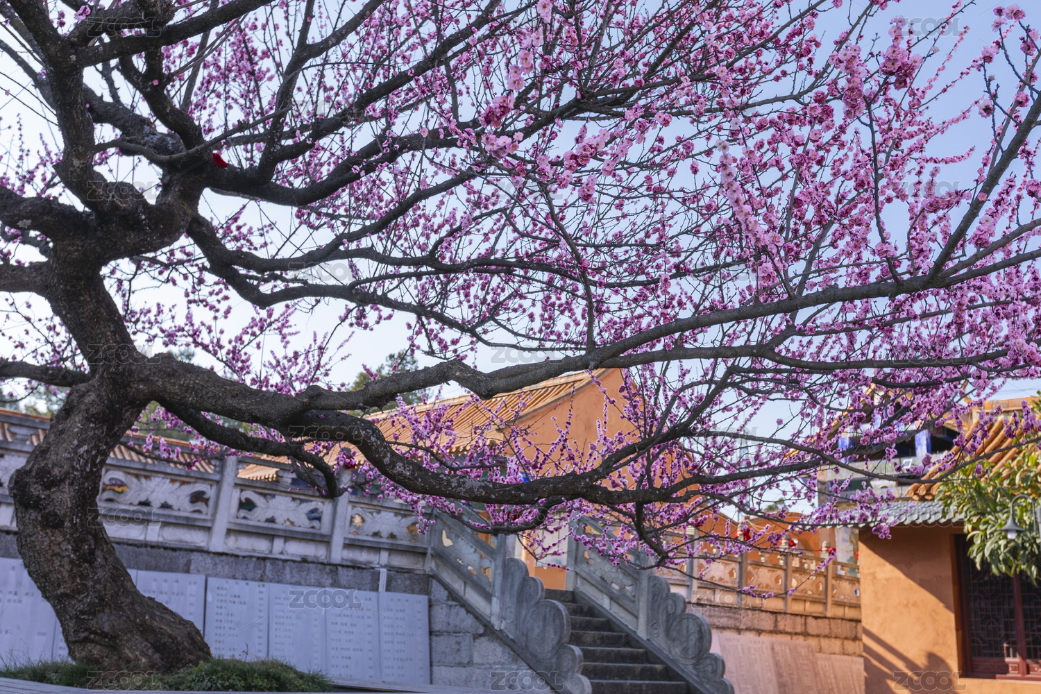 中国云南昆明棋盘山棋盘宫百年古树梅花盛开