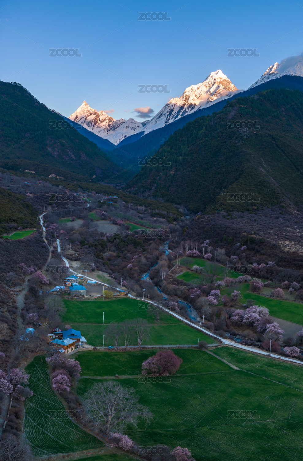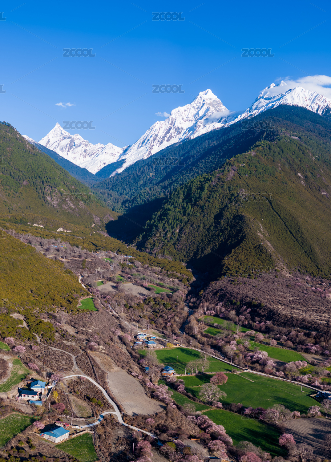 航拍春天桃花盛开的中国西藏波密桃花沟
