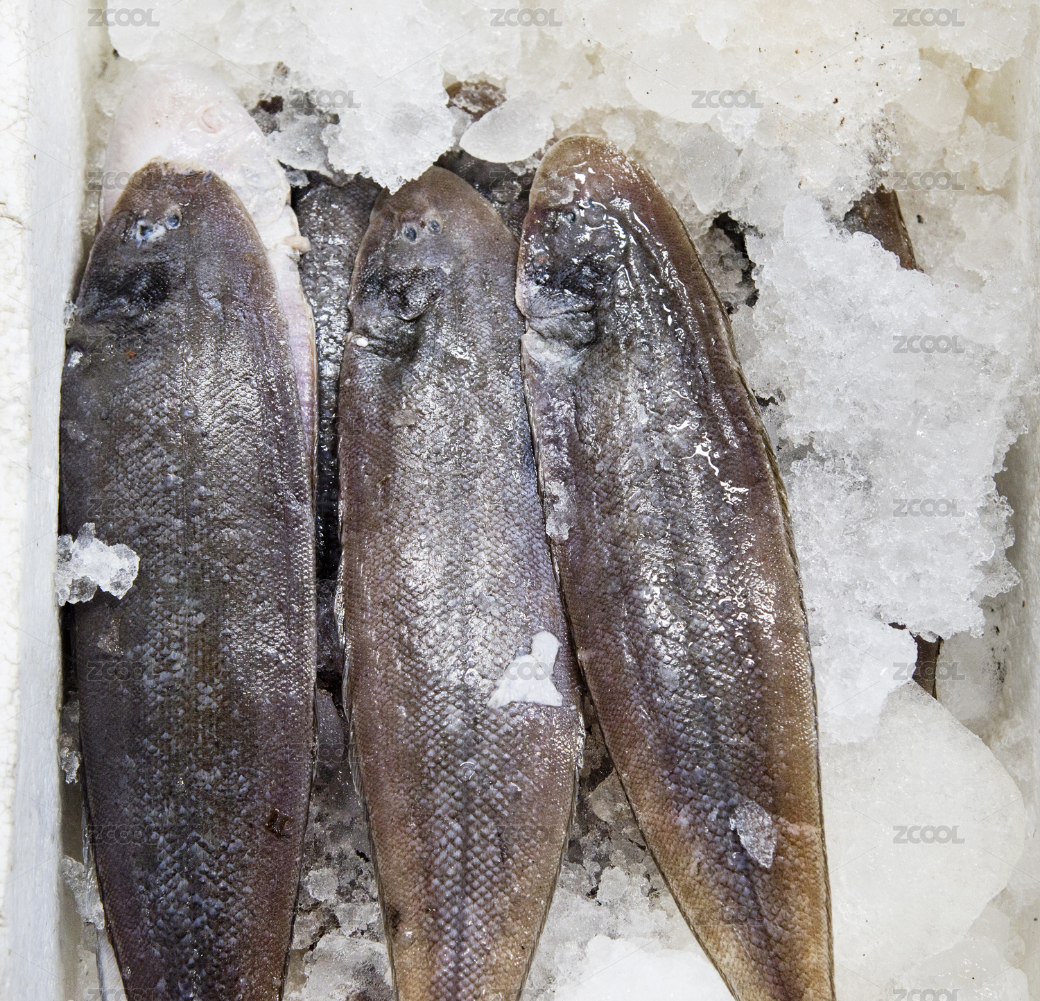 冰块上的鳎目鱼