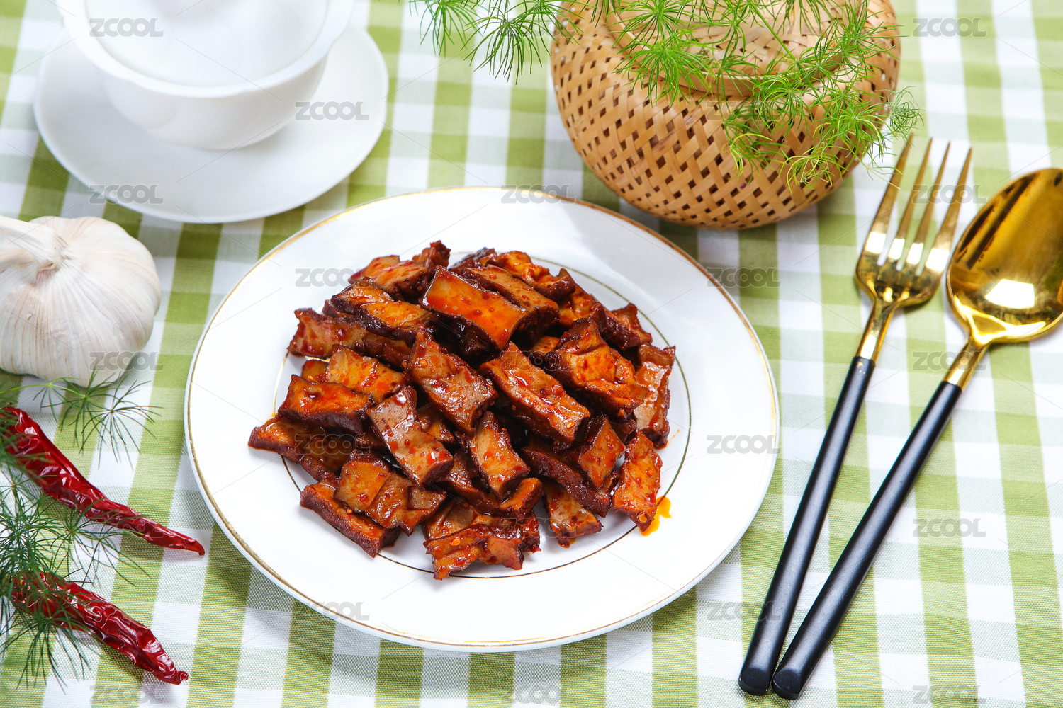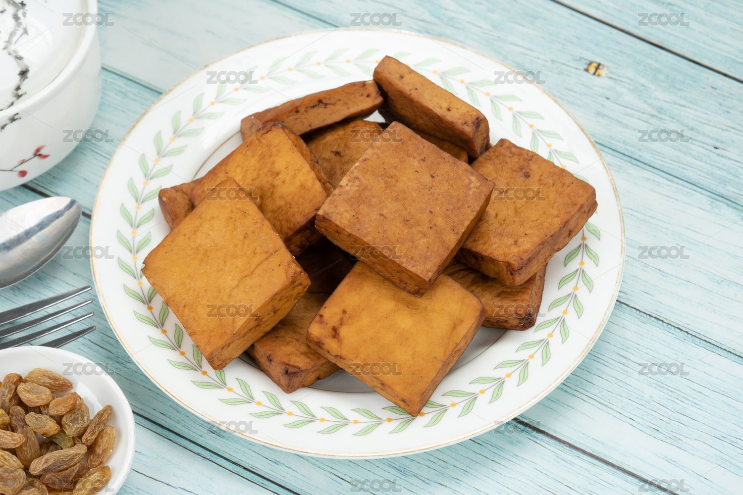 盘子里装满了卤豆腐干