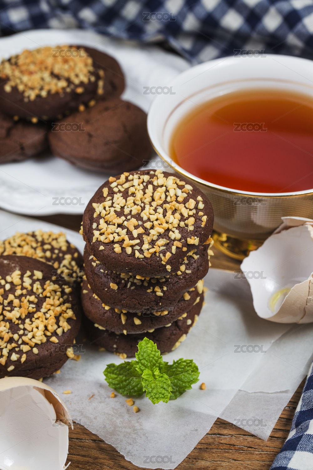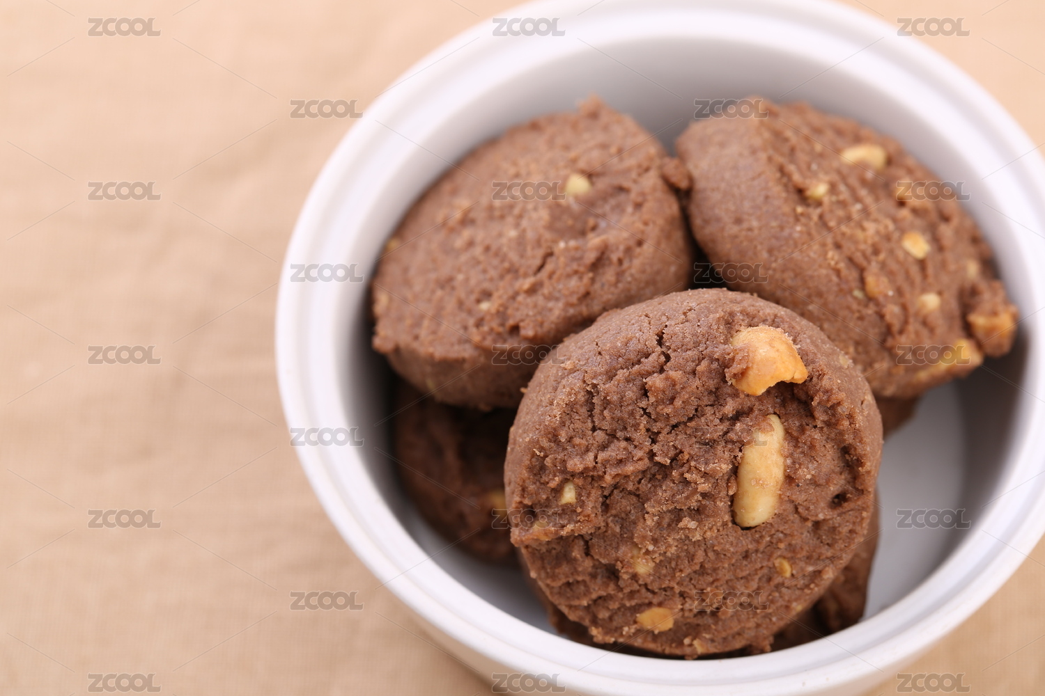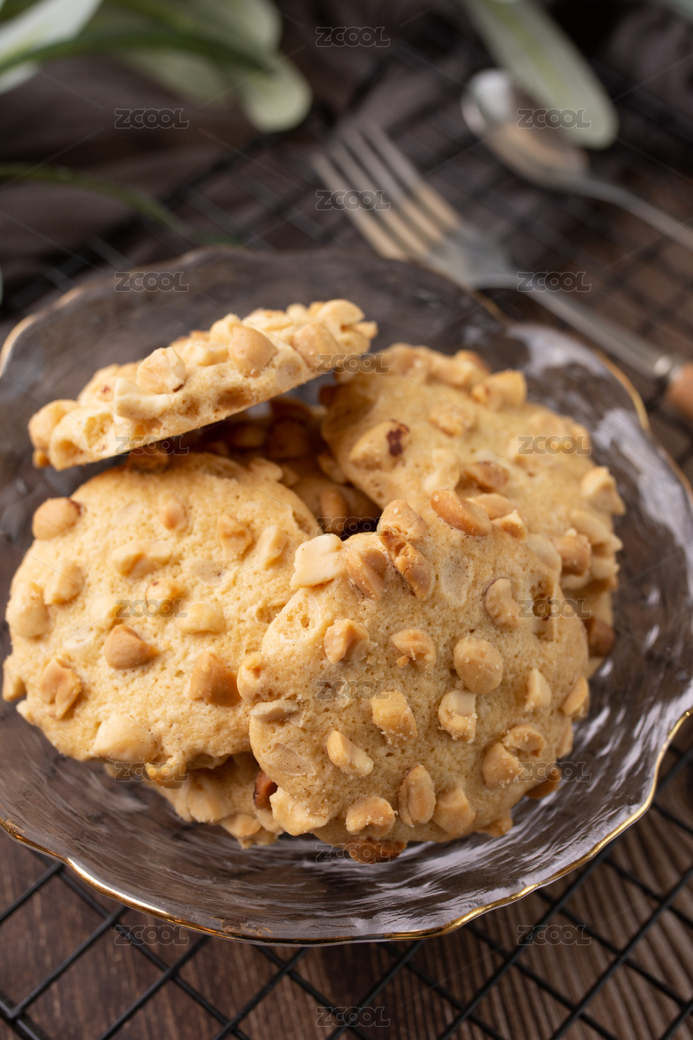 桌面上的玻璃碗里的美味可口的花生曲奇
