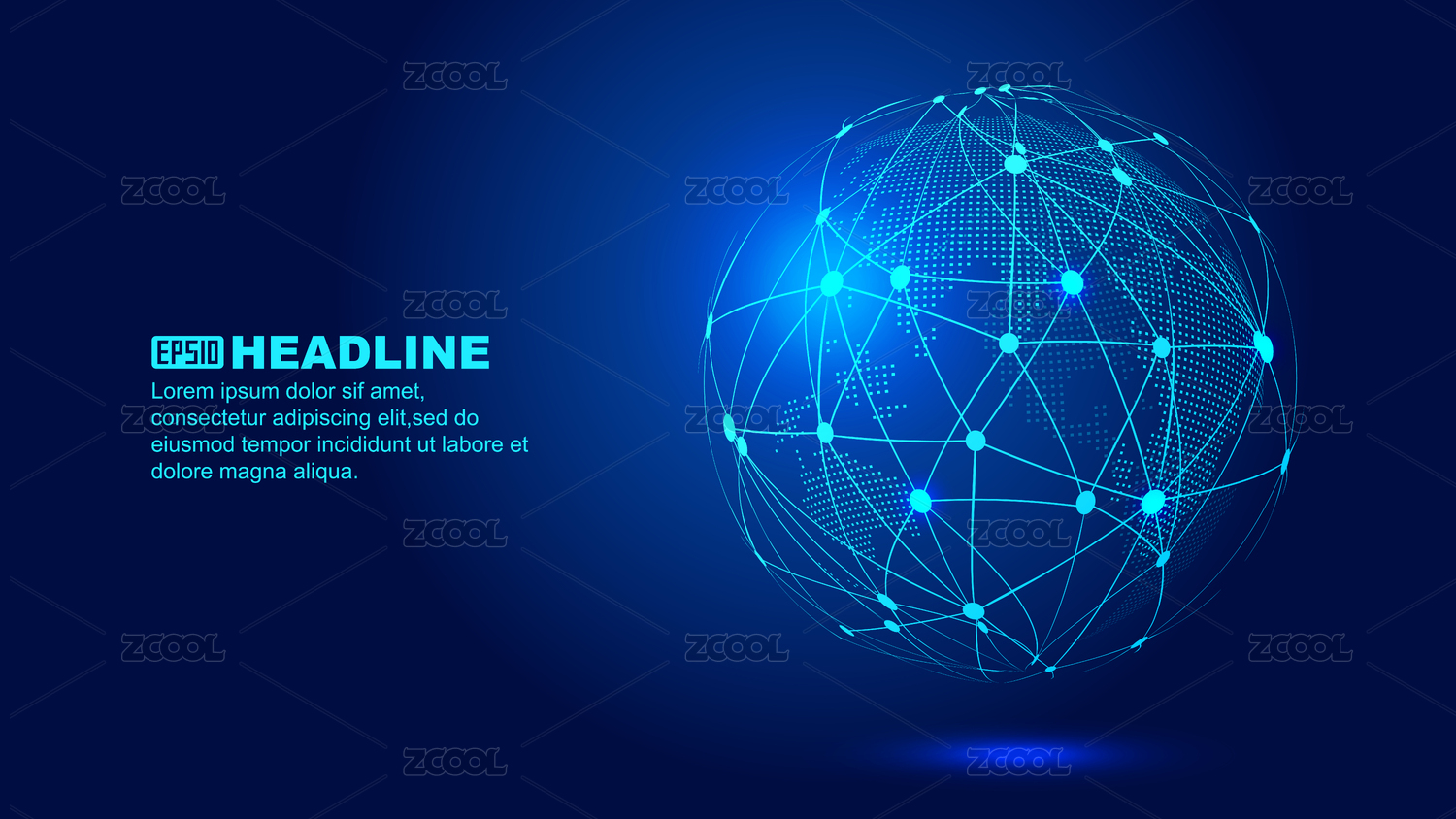 数码地球、点线结合,全球网络科技抽象矢量背景
