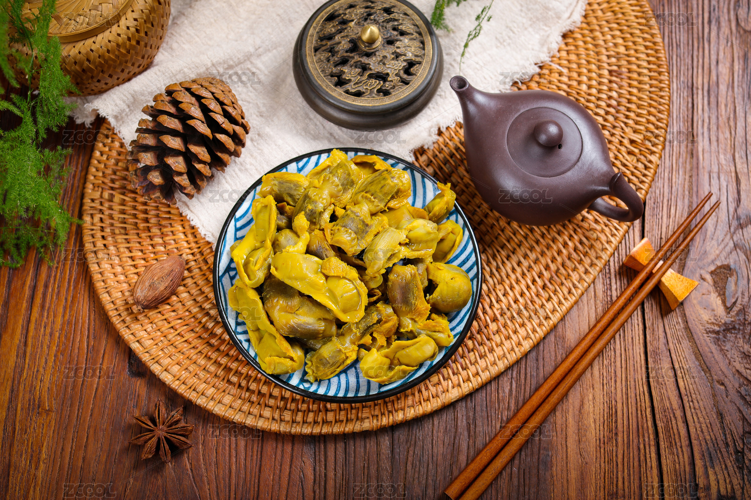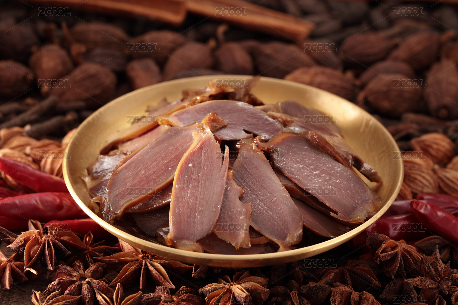 铜盘里的川味卤菜卤鸭胗卤鸡胗