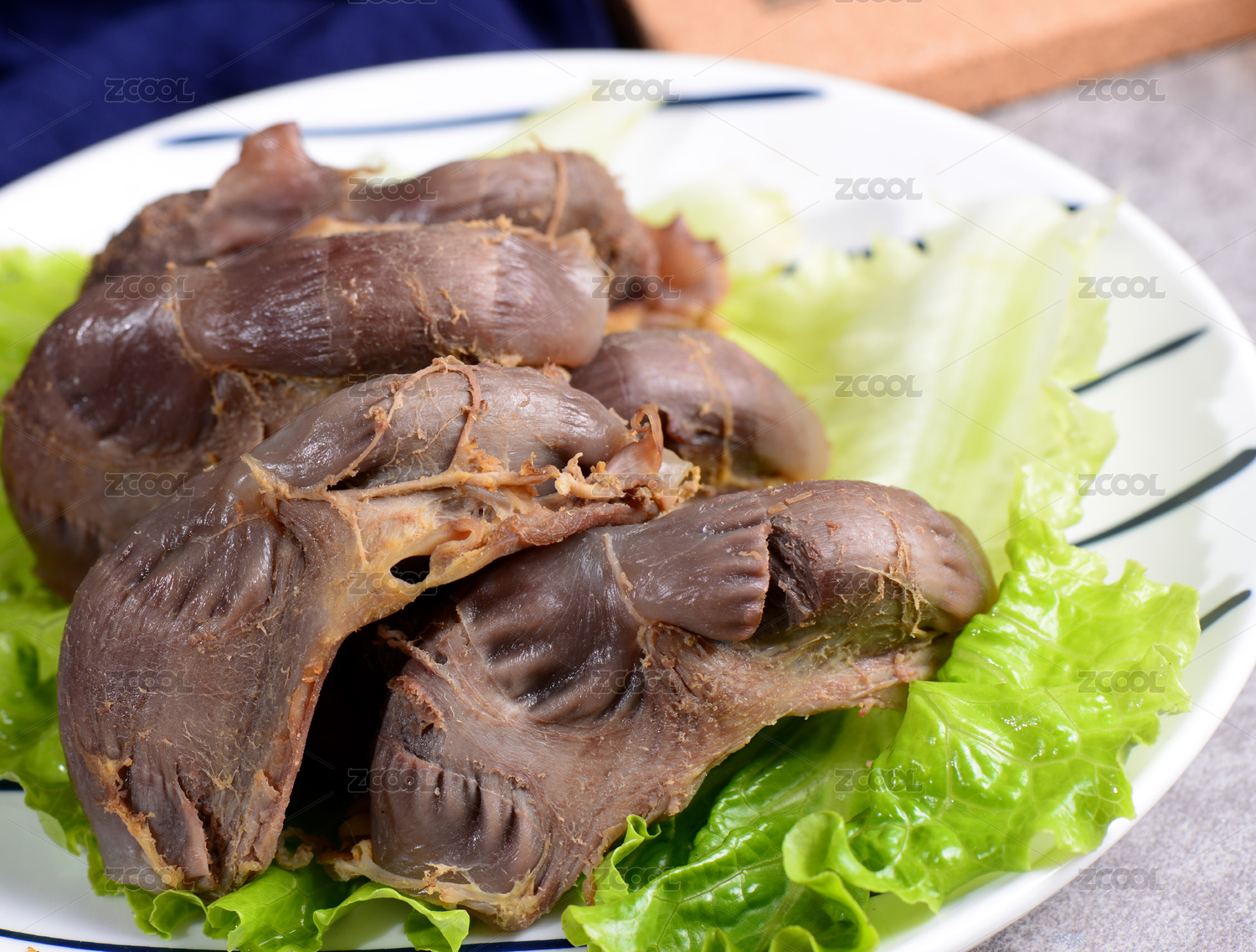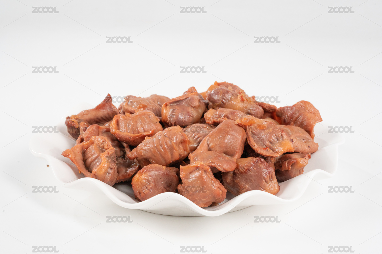 装在盘子里的卤鸡胗