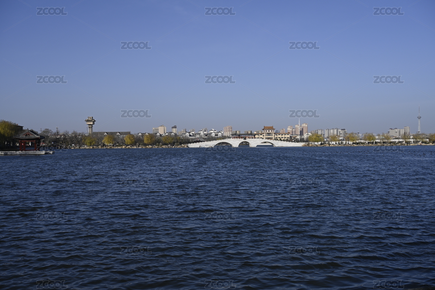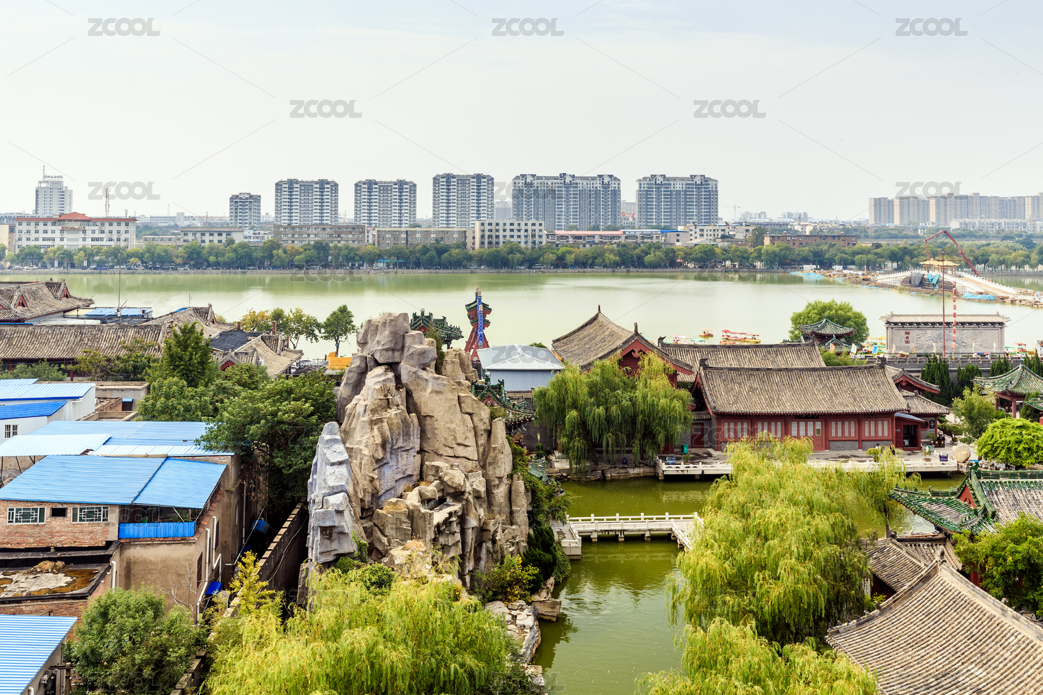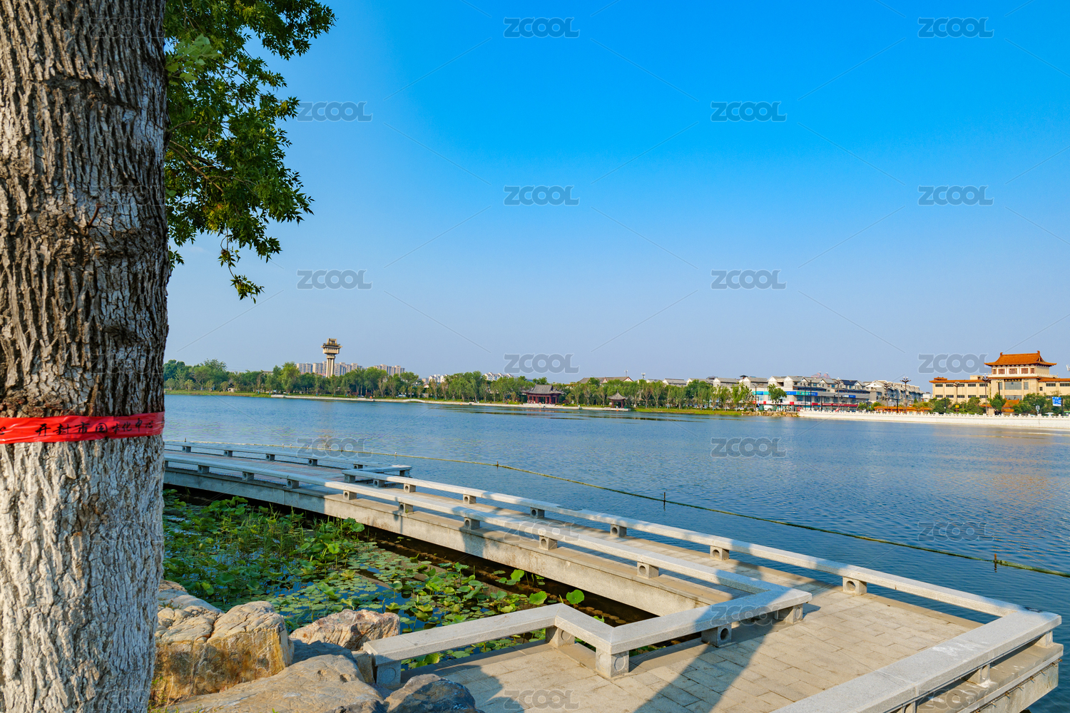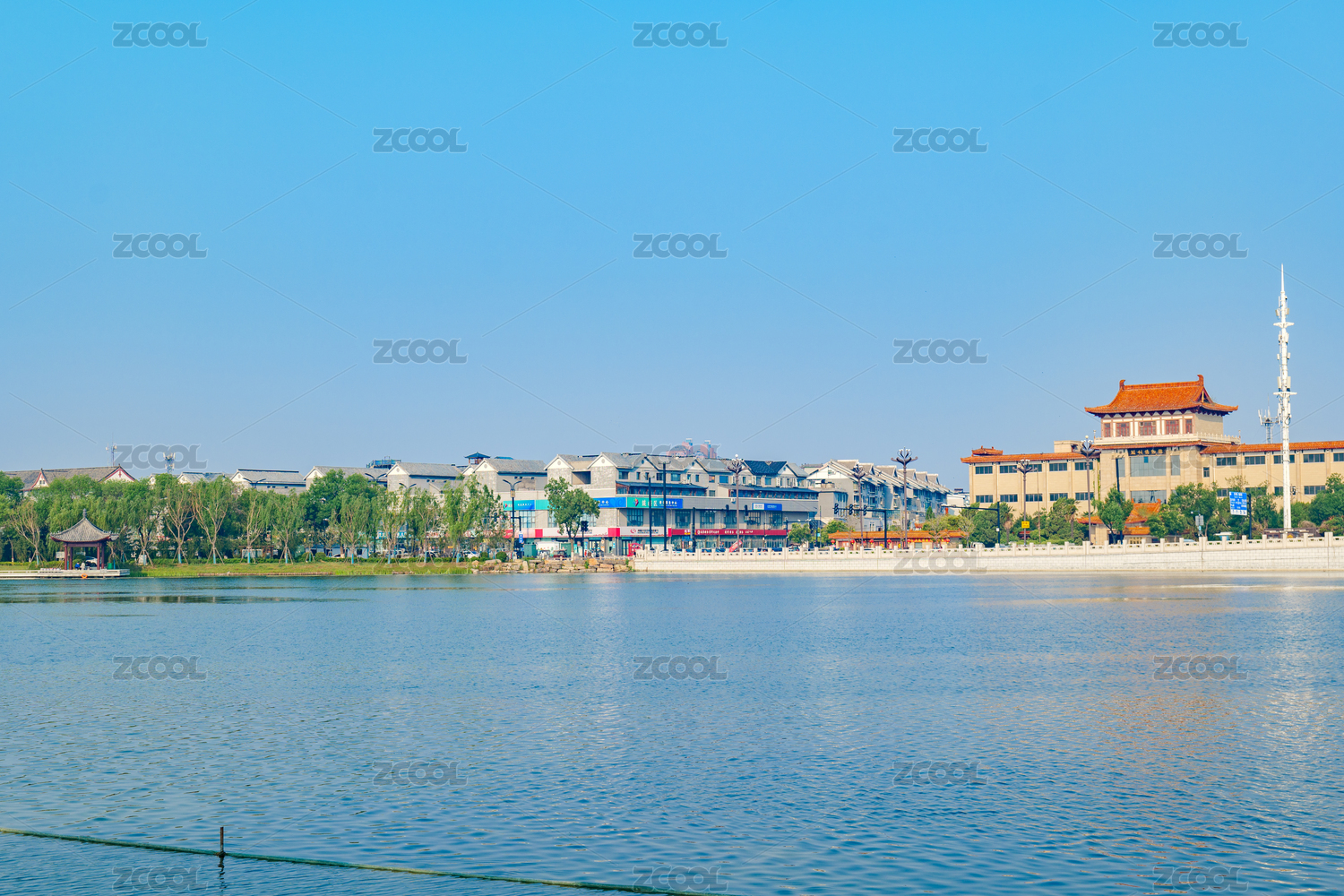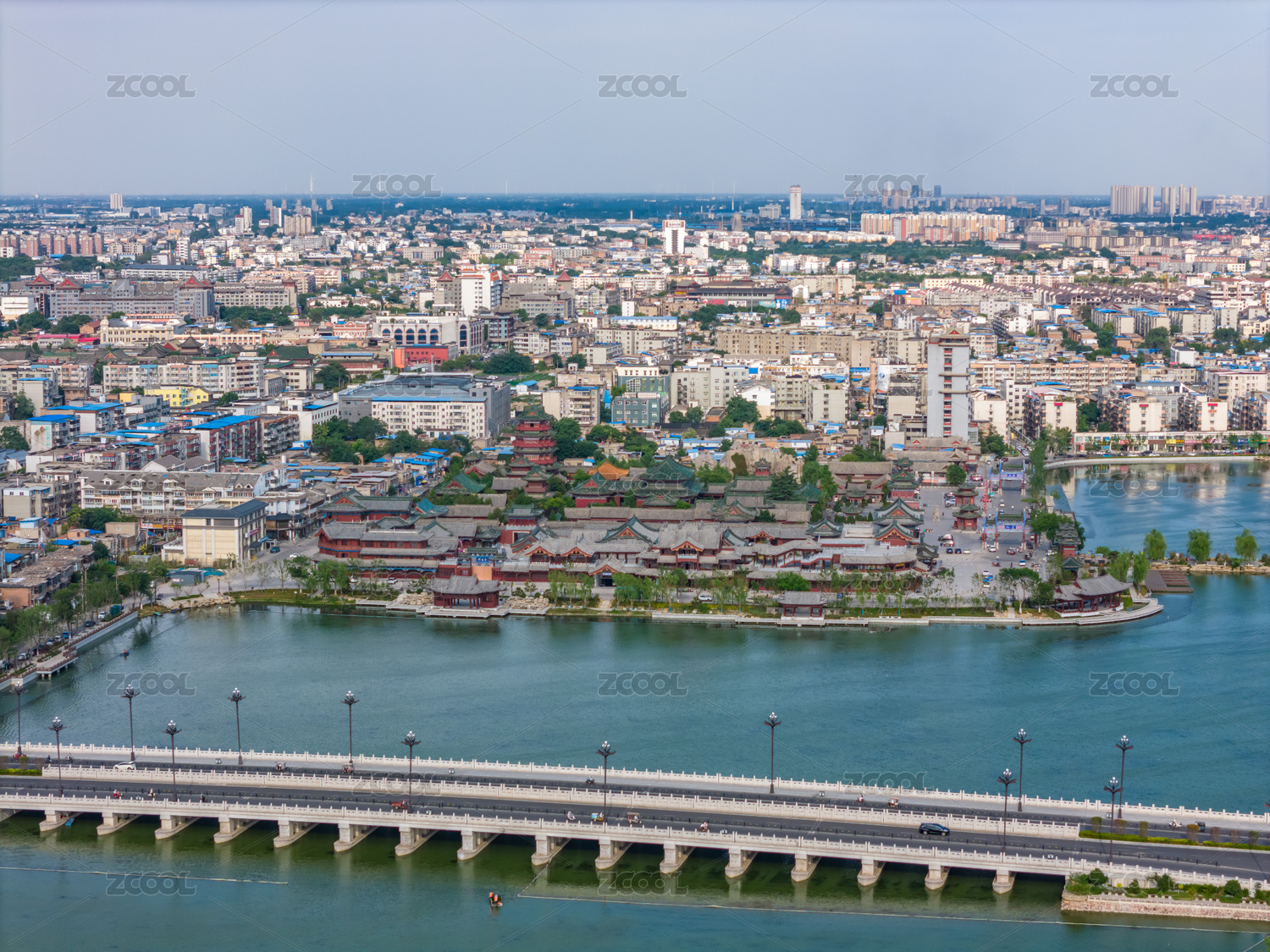 航拍河南开封包公湖风光宋都皇城旅游度假区