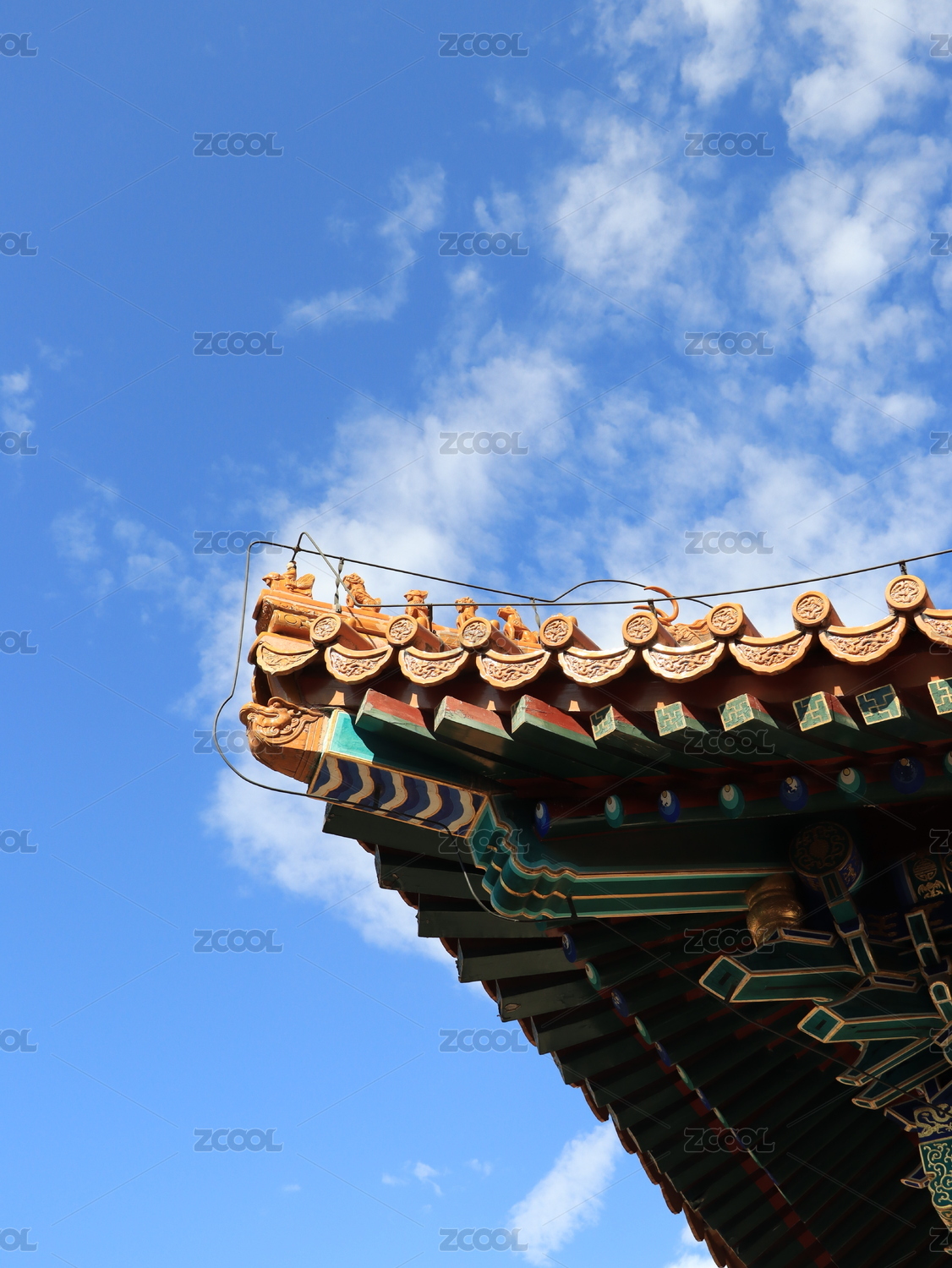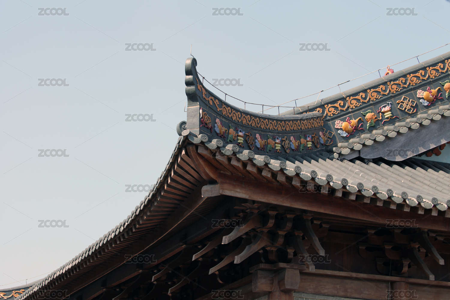 夕阳天空中的中式古典建筑飞檐翘角特写