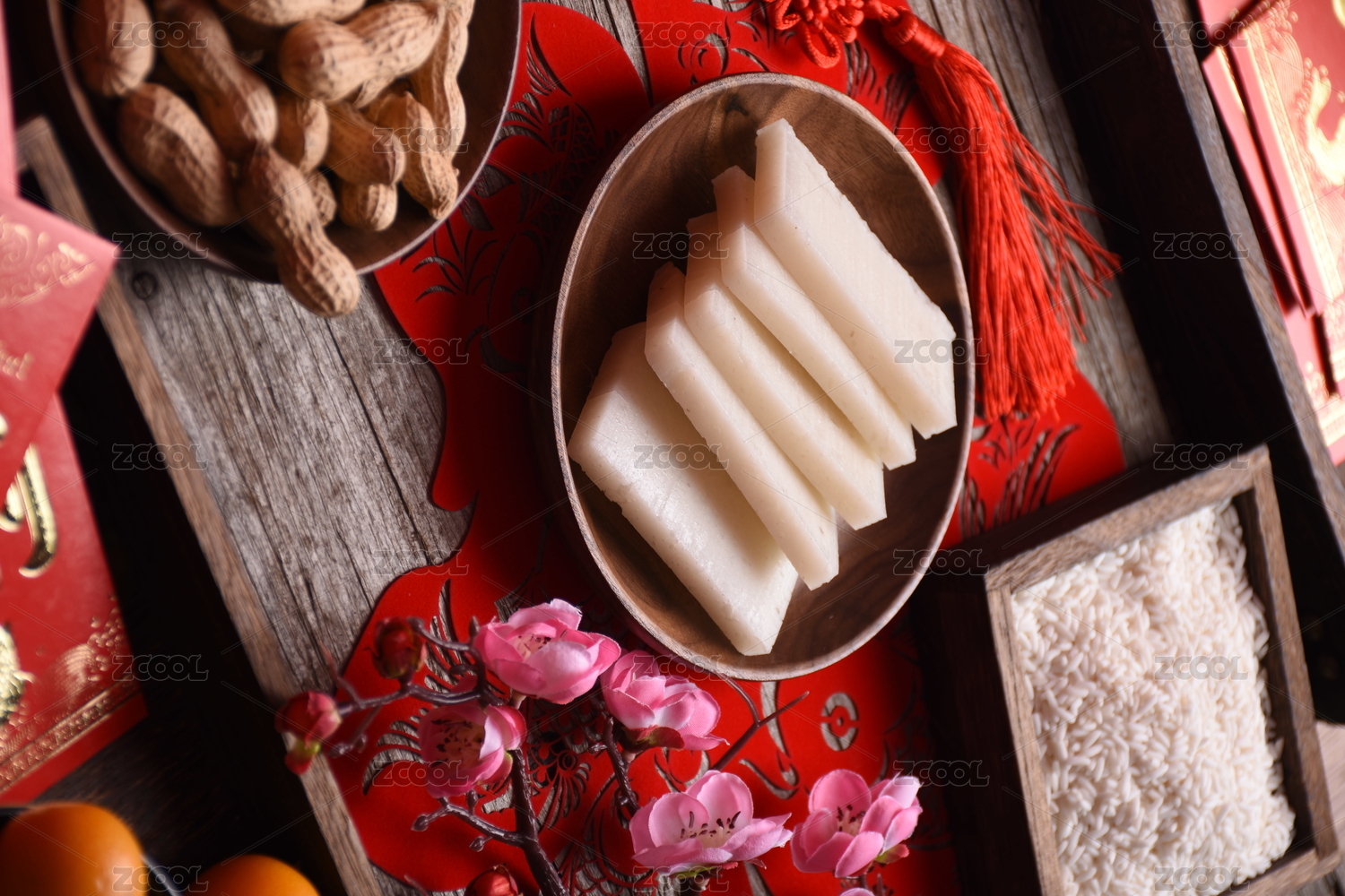 长盘里的吃火锅小吃黄豆面红糖糍粑条