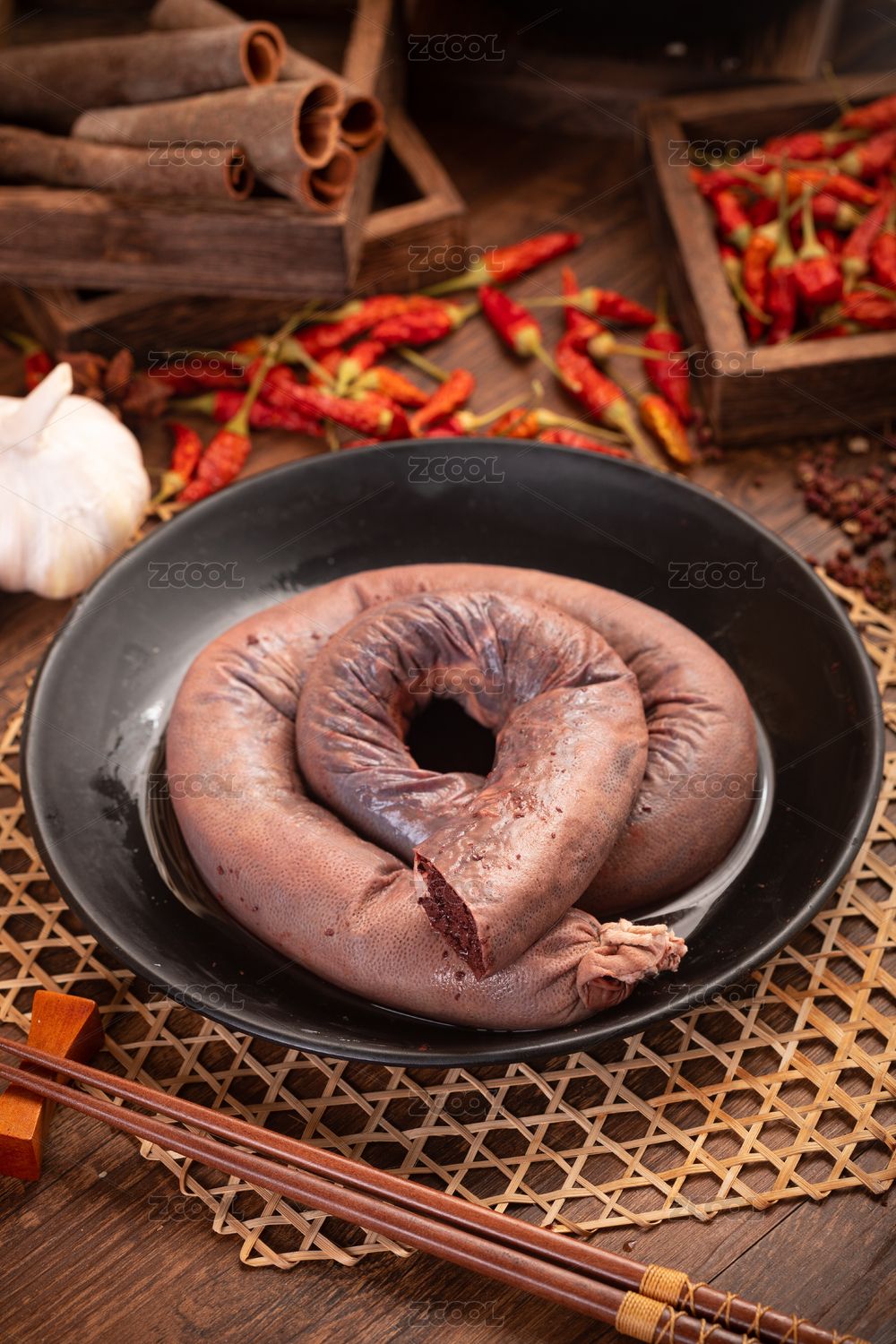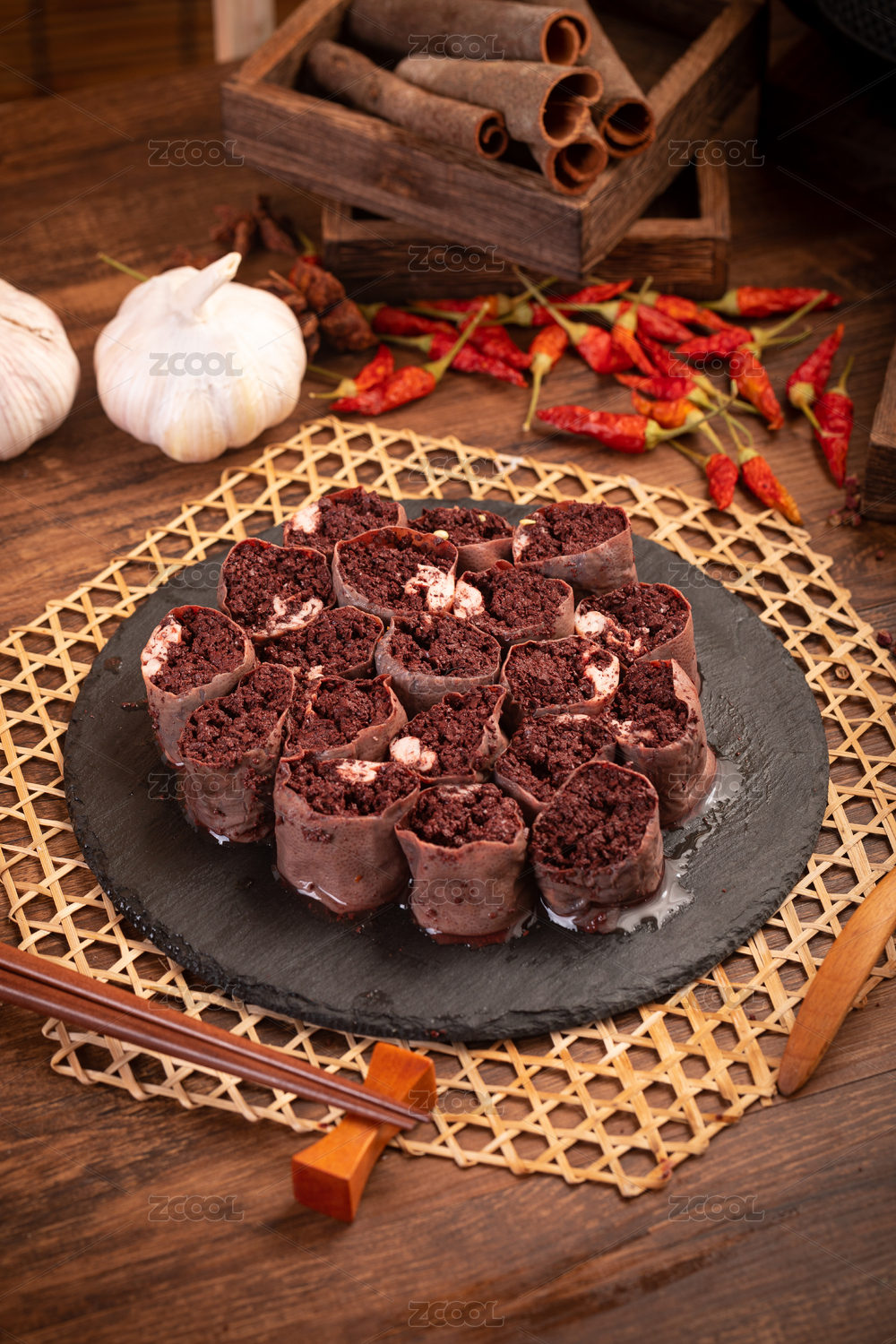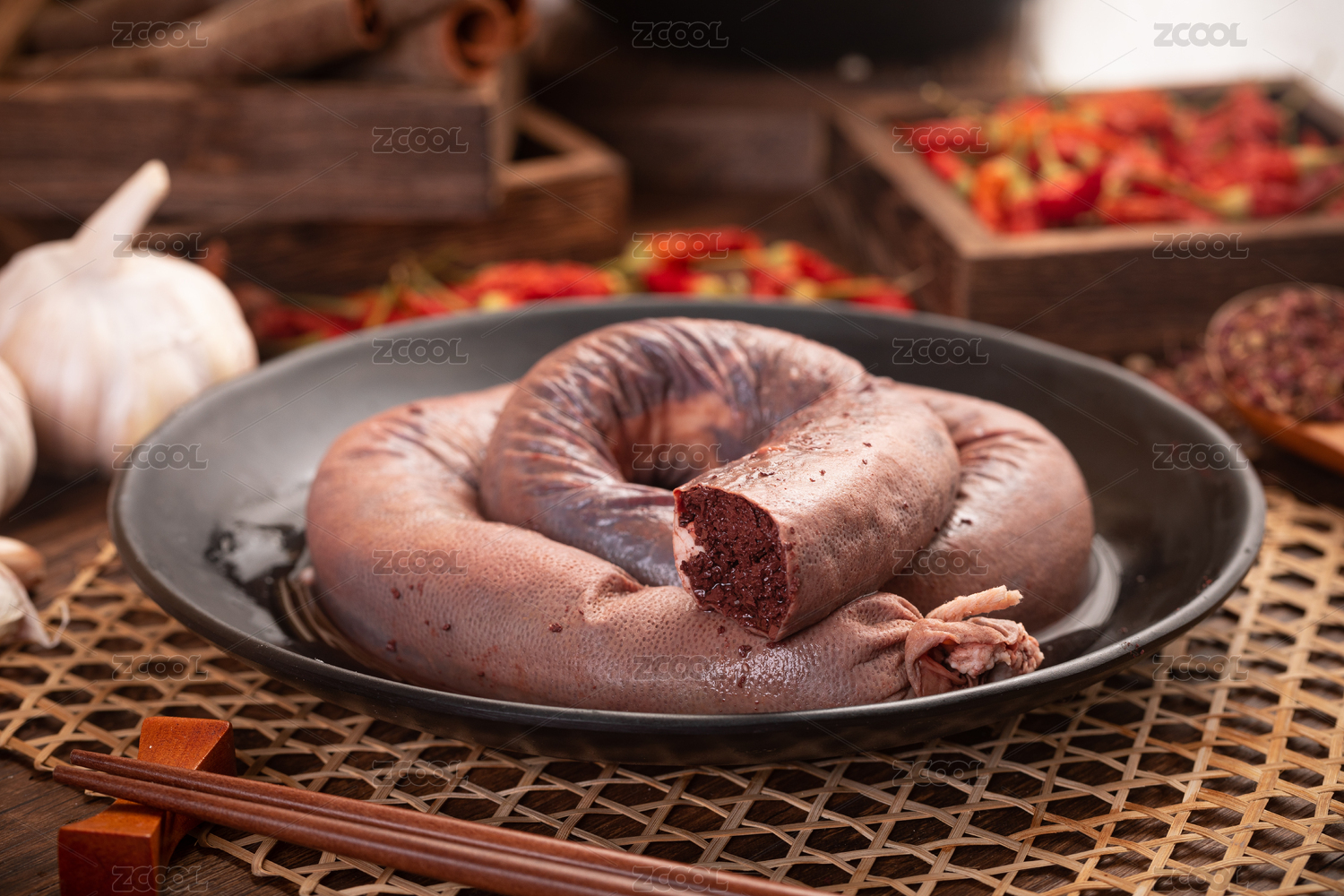 盘子里切片的河南安阳内黄猪血灌肠食材