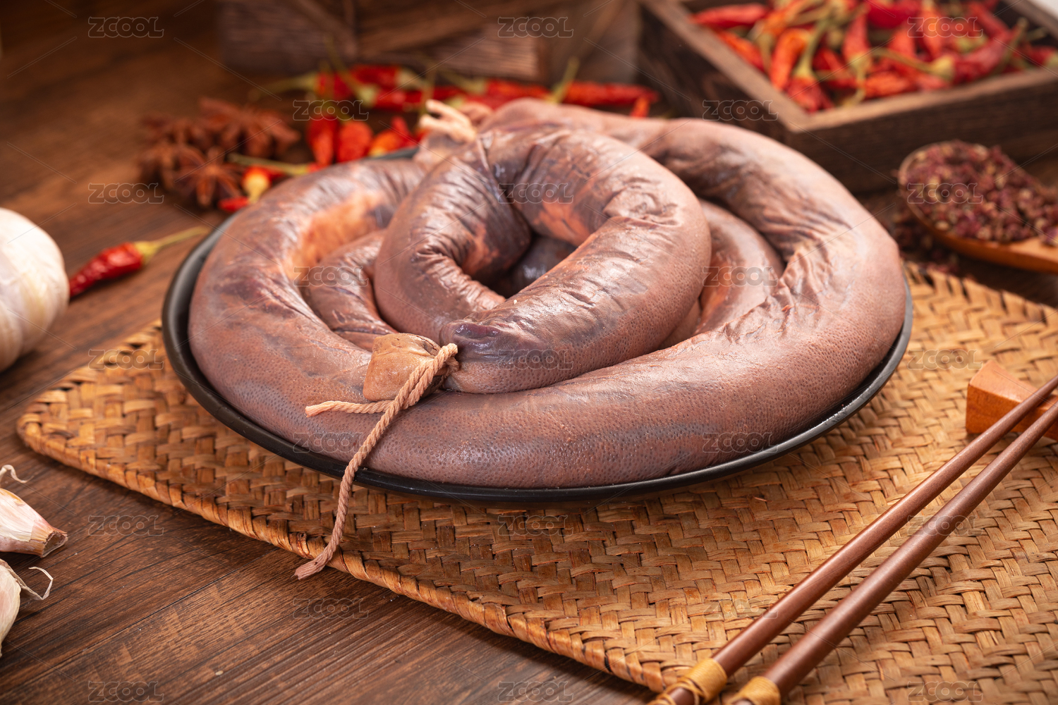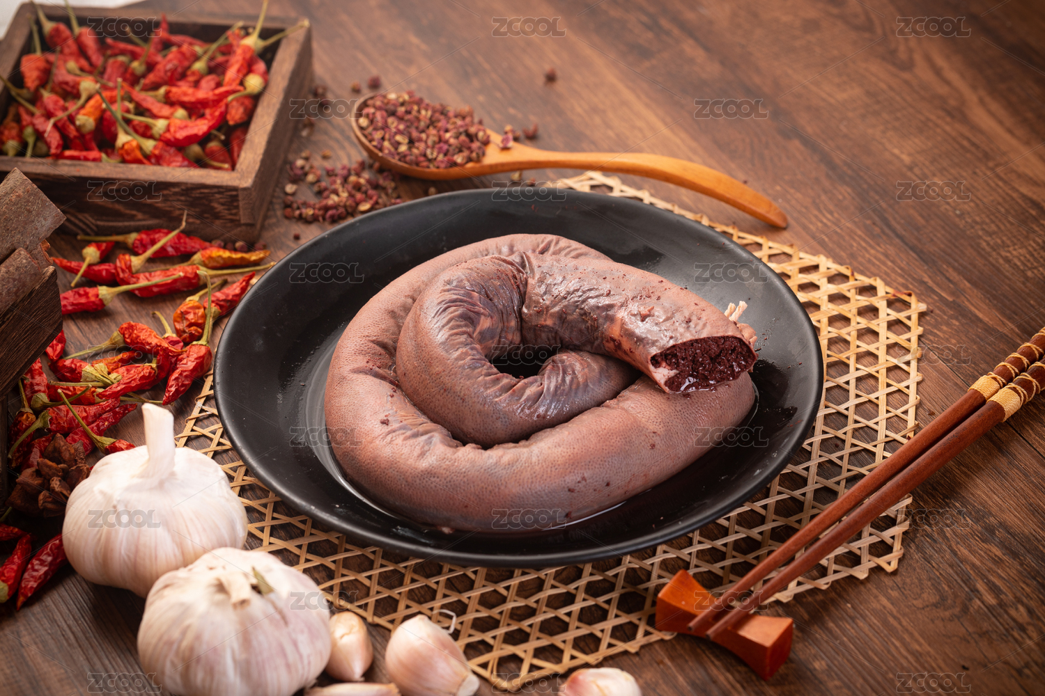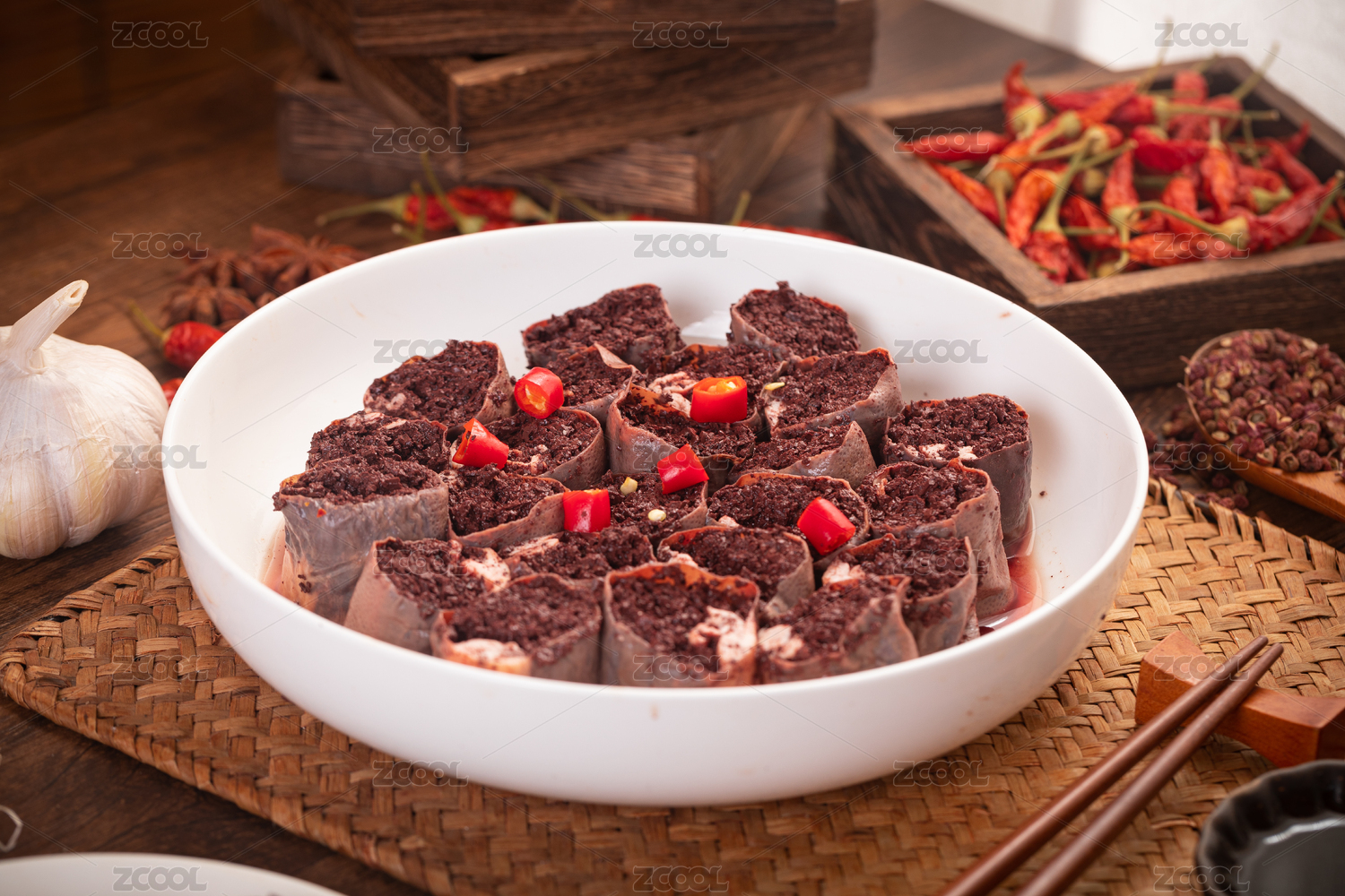 盘子里切片的河南安阳内黄猪血灌肠食材
