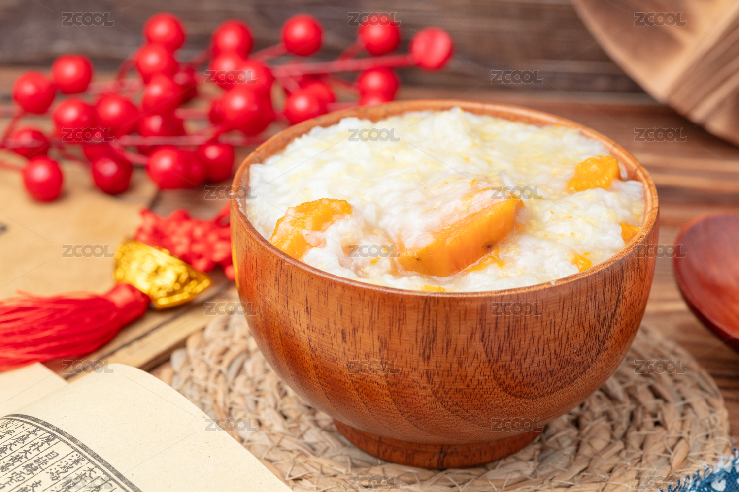 白背景上一碟酸菜炒瘦肉和一碗红薯粥