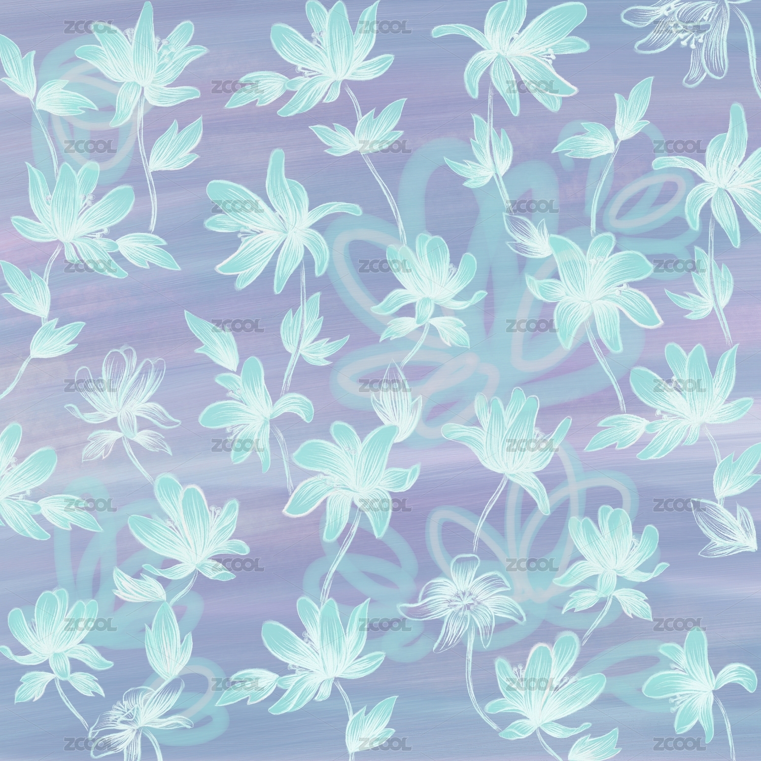 油画笔触手绘浅紫色底纹蓝花枝肌理背景素材