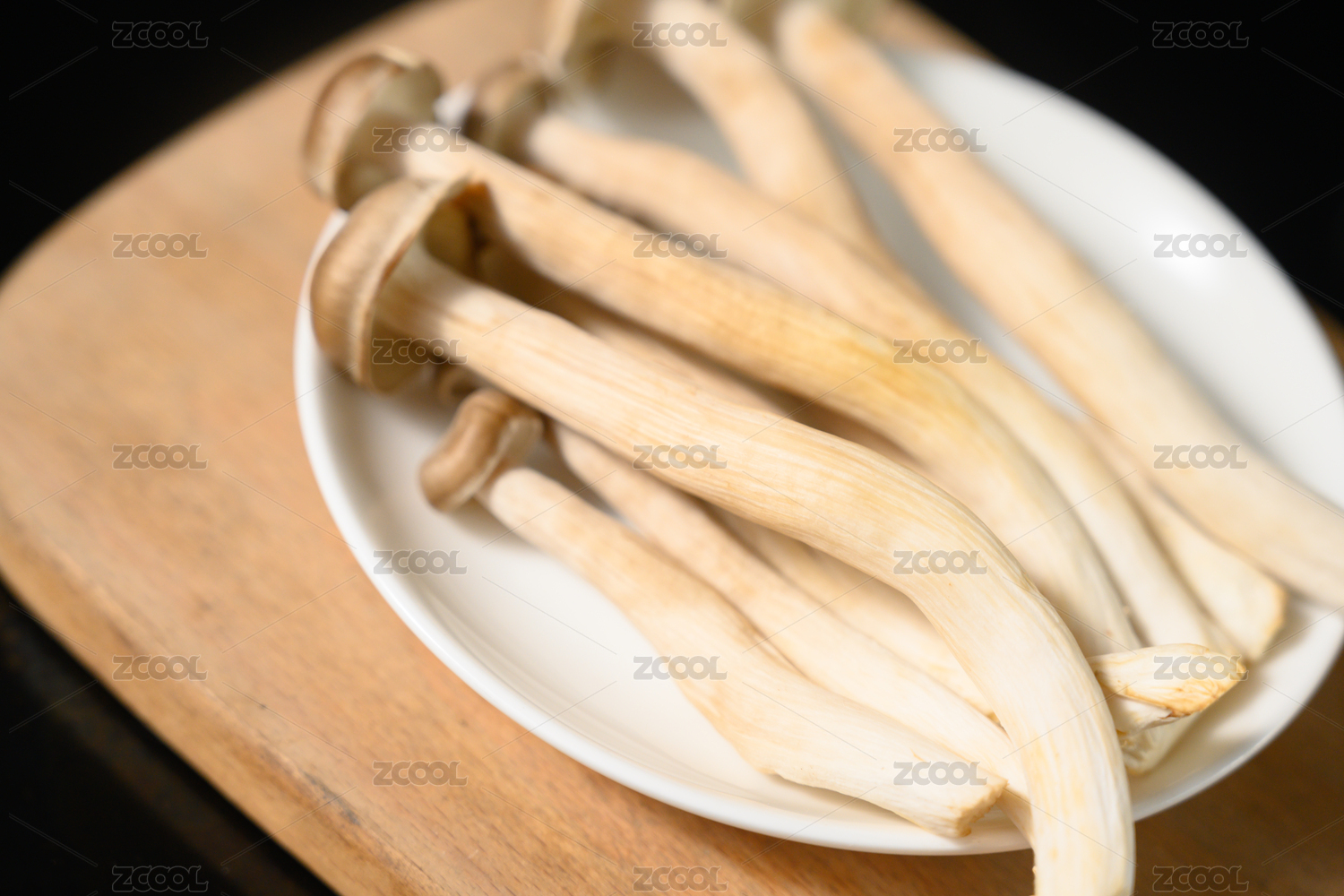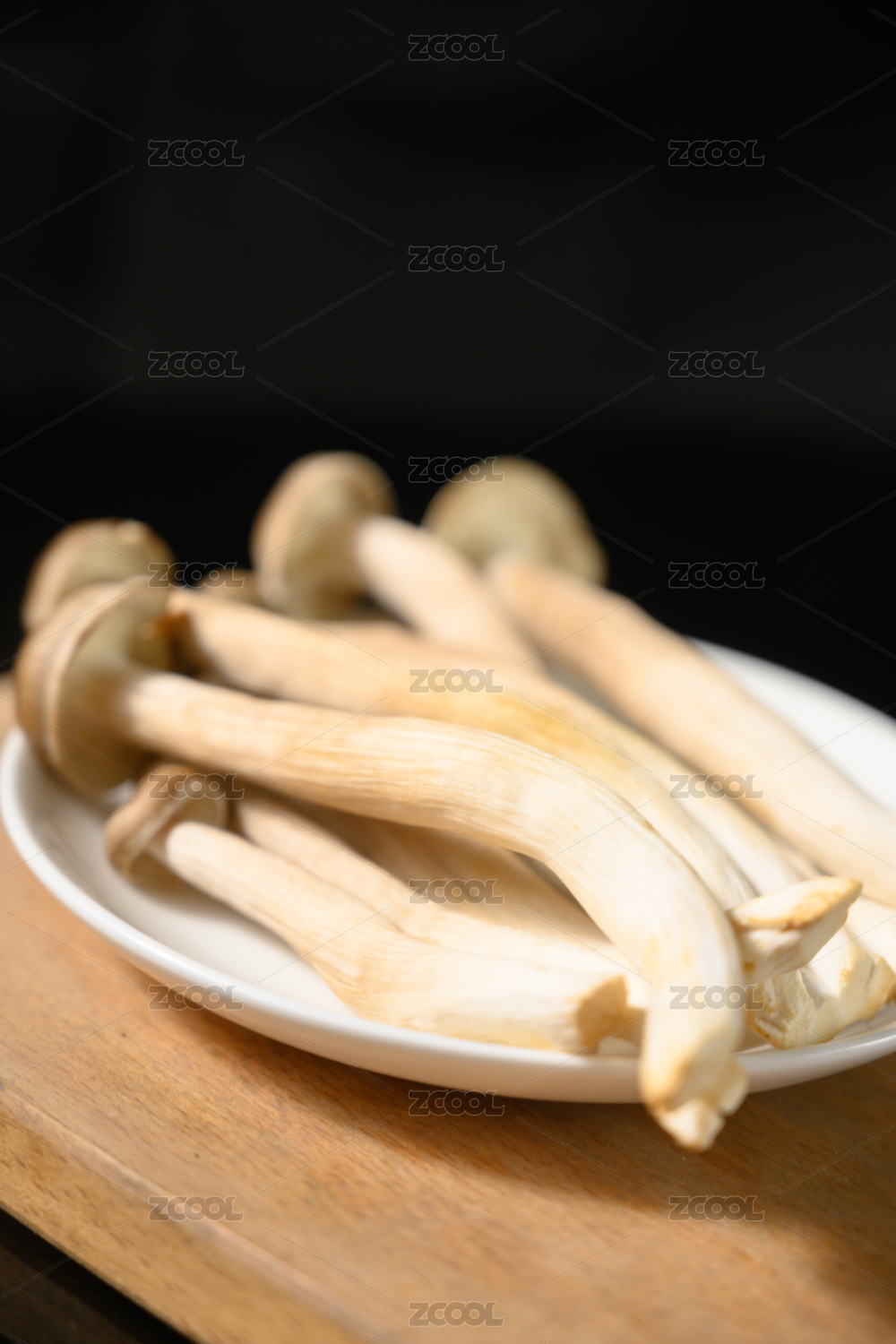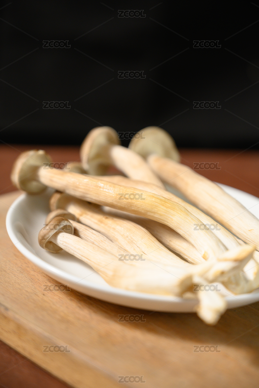 桌面上的盘子里的美味可口的新鲜鹿茸菇