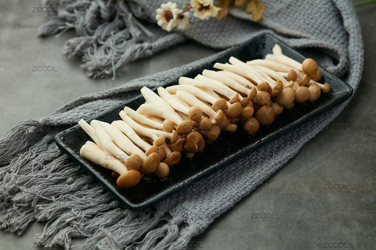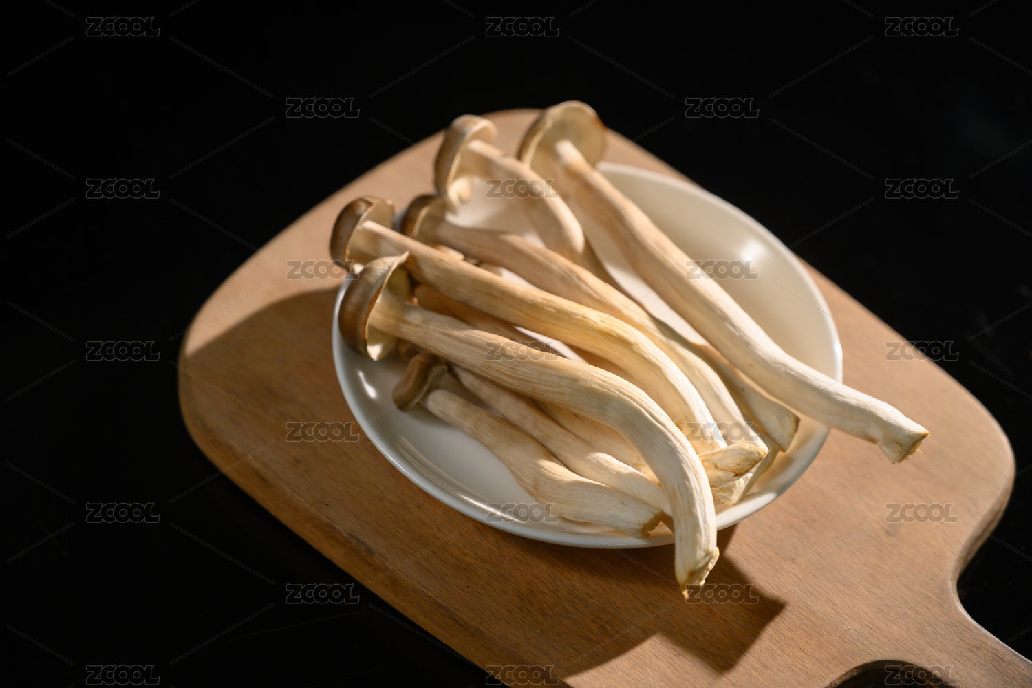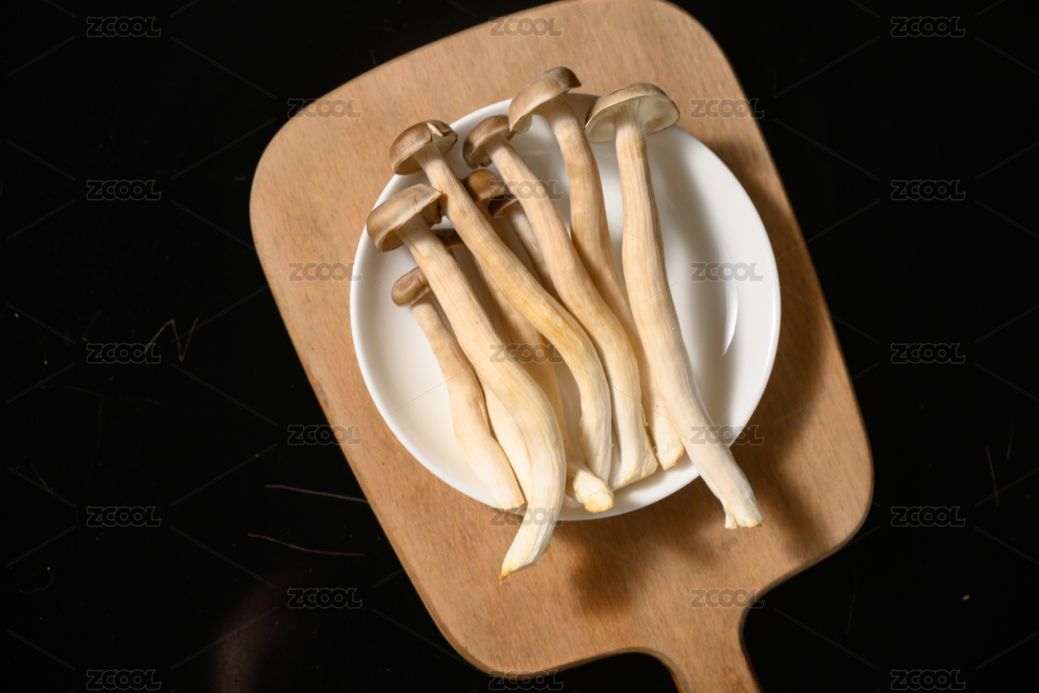 桌面上的盘子里的美味可口的新鲜鹿茸菇