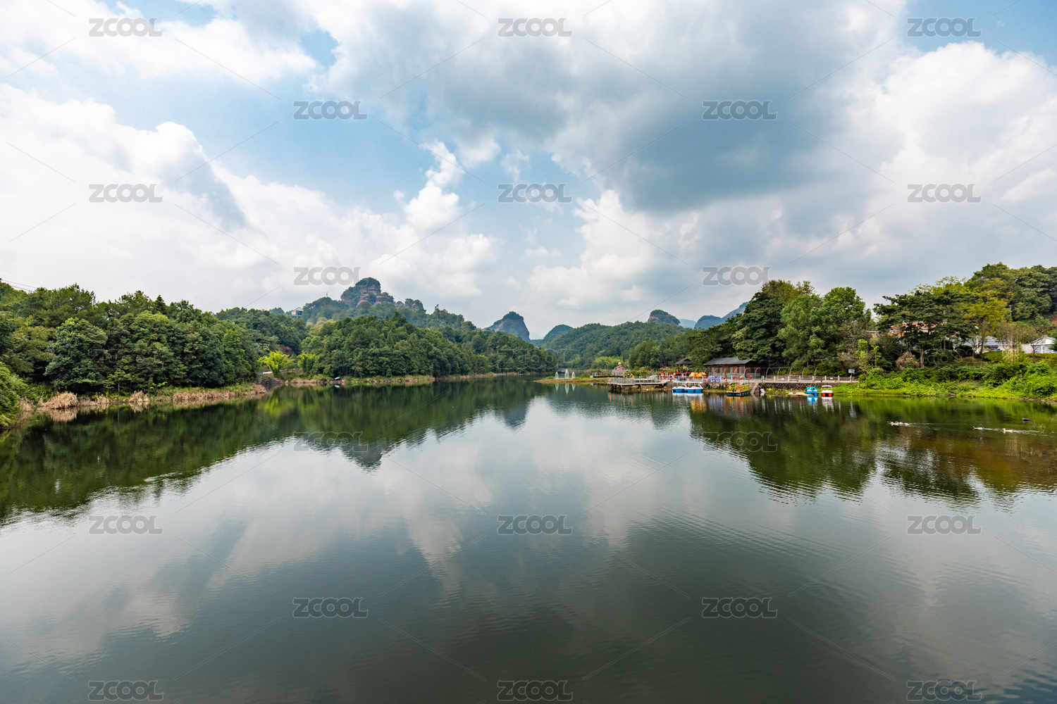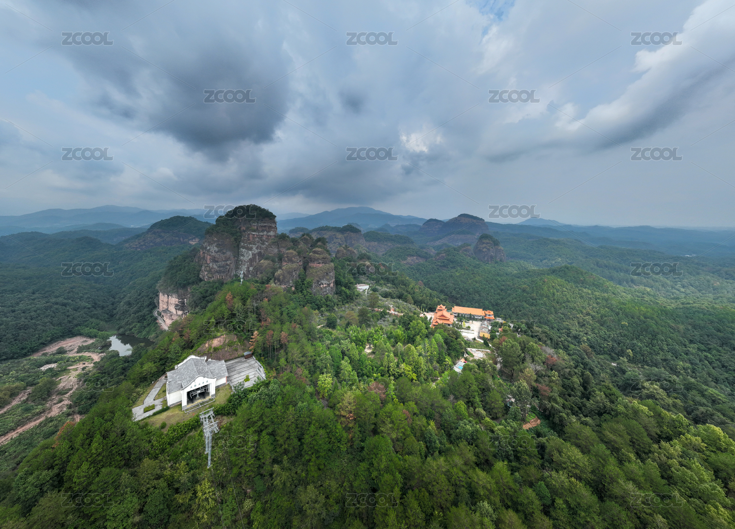 平远五指石景区中丹霞主峰及植被茂密的山峦,中国广东平远