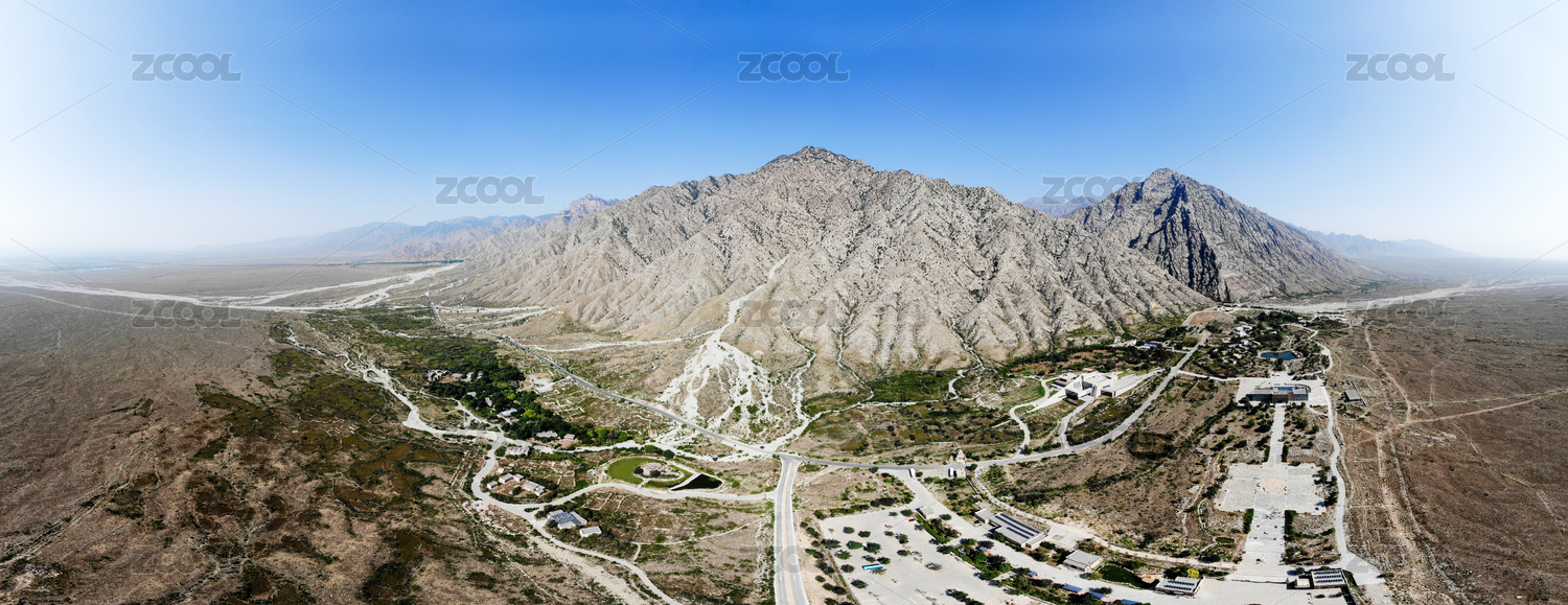 航拍宁夏银川贺兰山岩画遗址公园全景图