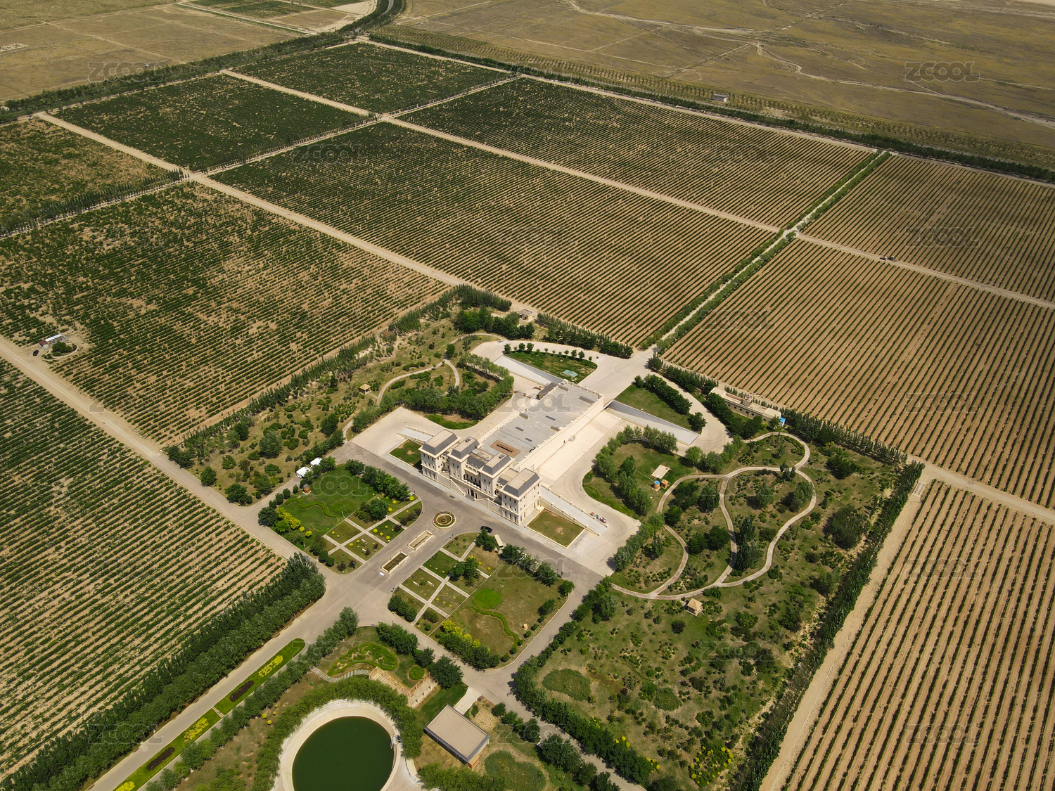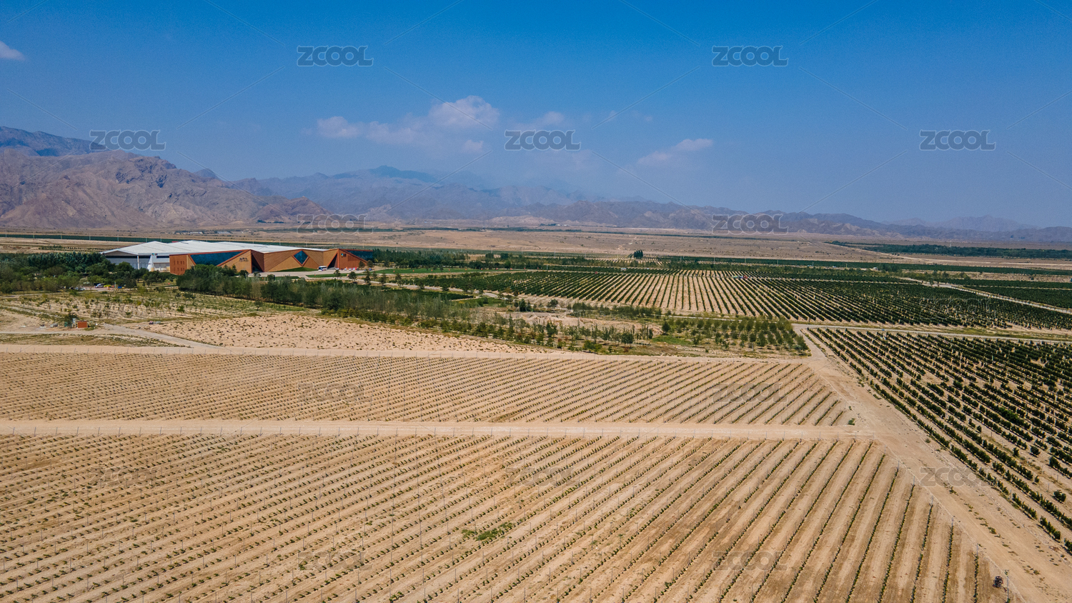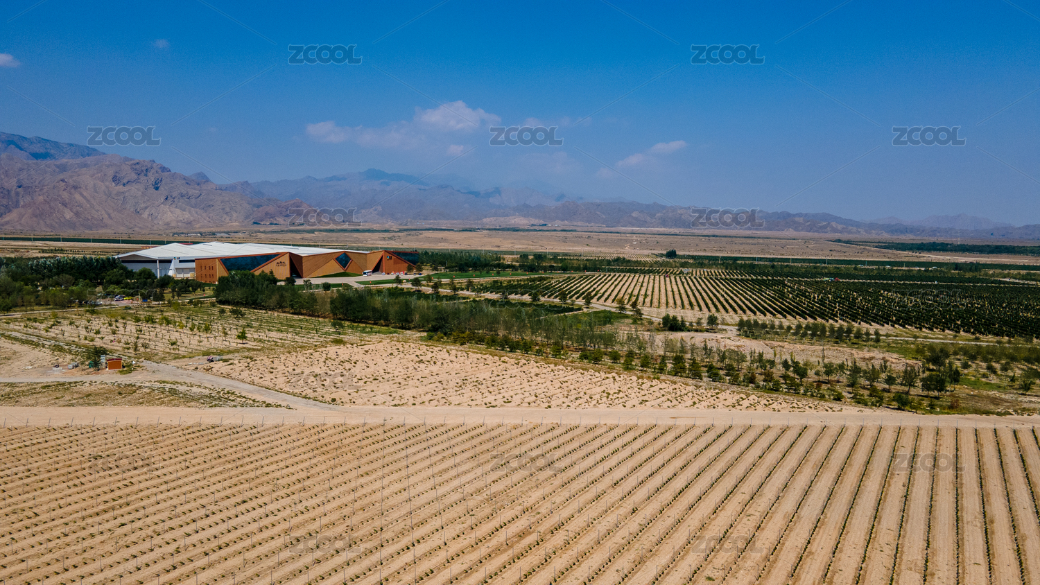 航拍宁夏贺兰山东麓葡萄酒酒庄美贺庄园