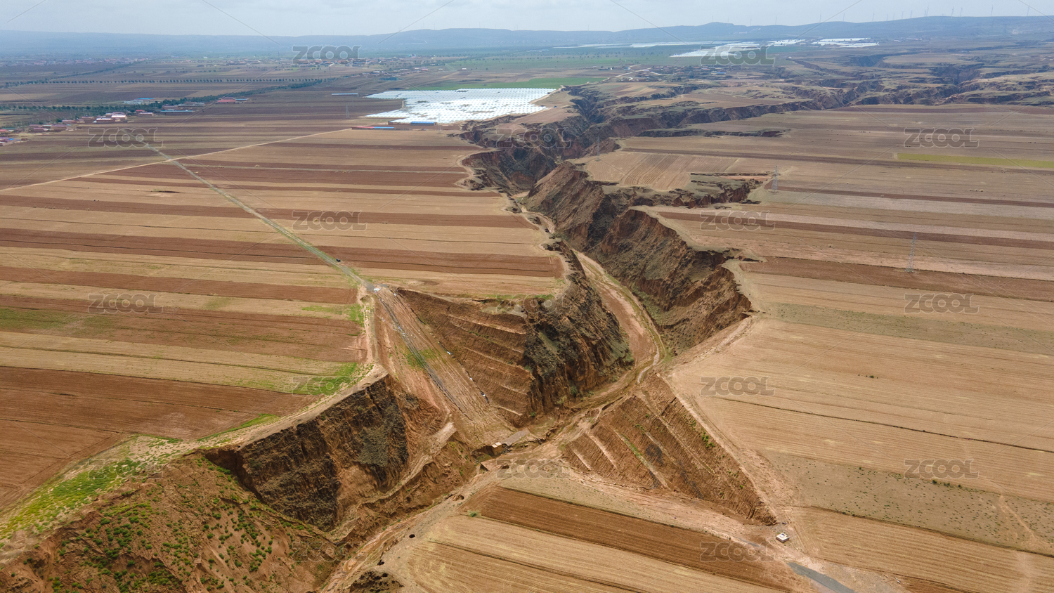 航拍宁夏中部黄土高原农田农场田园风光