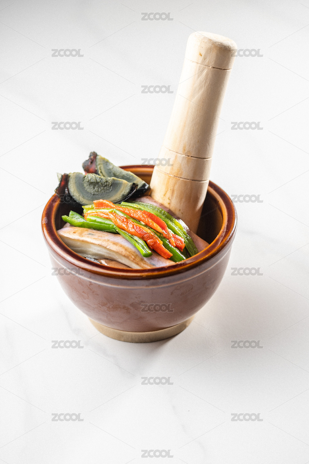桌面上的盘子里的美味可口的擂椒皮蛋酱