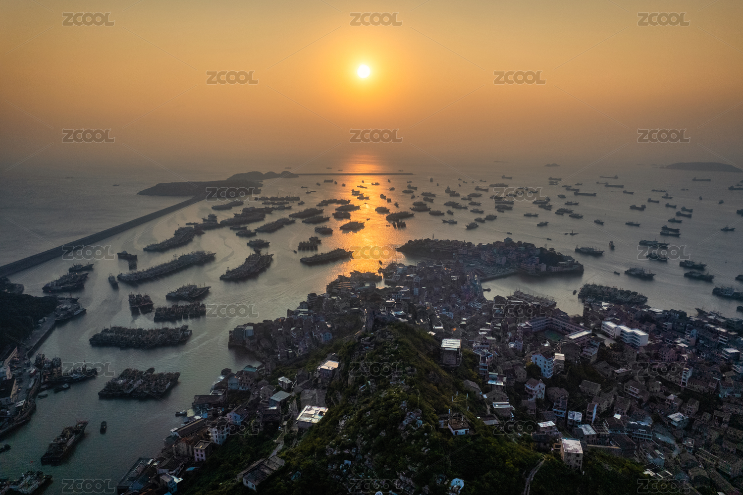浙江省台州市温岭市小箬村-日出时渔村渔港