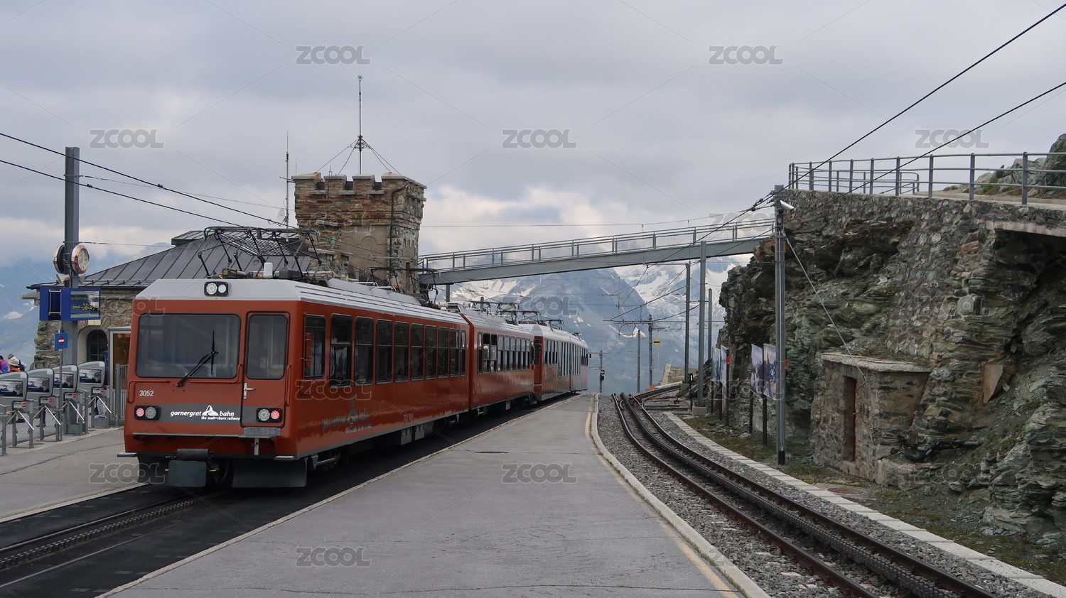 欧洲瑞士采尔马特橘红色冰川列车站台